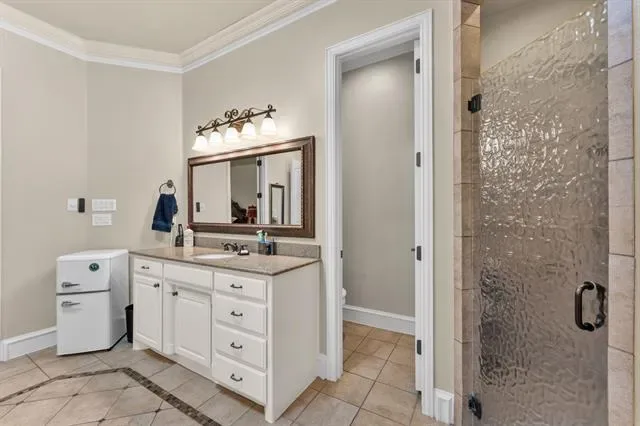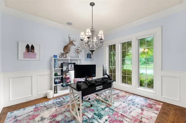 The chef’s kitchen is well-appointed with a gas cooktop, double ovens, built-in microwave, dishwasher, disposal, vent hood, and a convenient water line to the refrigerator—ideal for both daily use and hosting guests.