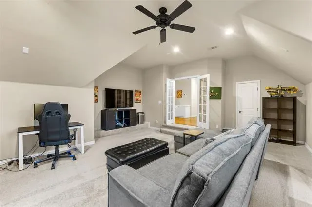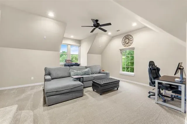 Step inside to a bright, inviting interior with fresh paint throughout most of the home and brand-new carpet. Thoughtfully designed with custom details, you’ll appreciate the vaulted ceilings, decorative lighting, multiple staircases, dry bar, and built-in wine cooler. The home is enhanced with whole-home audio wiring and speakers in the dining room, office, living room, primary bedroom, primary bath, and patio, creating an exceptional atmosphere for entertaining. Smart home features include Hue lighting throughout the home, app-controlled and app-enabled garage doors via MyQ.