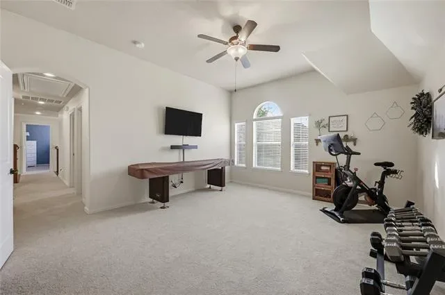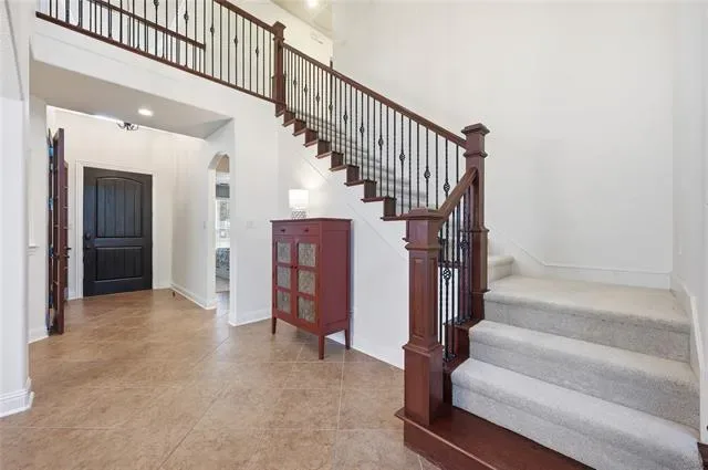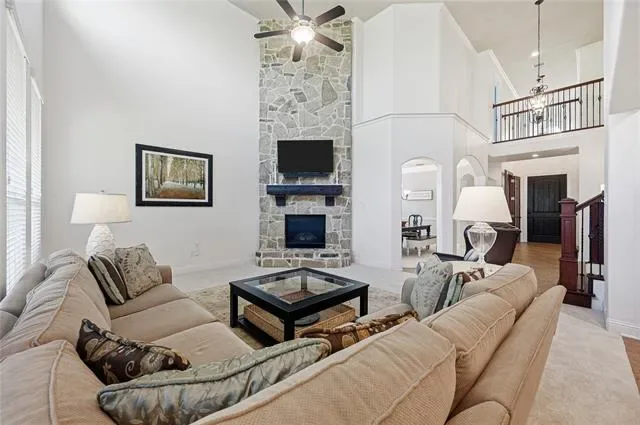 Discover a sophisticated retreat in the heart of coveted Trophy Club with this stunning residence, perfectly positioned within walking distance to top-rated schools, miles of trails, and the community pool and splash pad. A striking brick and stone elevation with classic shutters and a recently replaced roof welcomes you into a light-filled interior where new carpet and fresh paint create an immediate sense of grandeur and airiness. The family room serves as a breathtaking central gathering place, where soaring two-story ceilings and a magnificent floor-to-ceiling stone fireplace create a dramatic yet inviting backdrop for everyday life. Work from home in the executive office featuring a wall of built-ins and French doors, or host friends and family in a kitchen equipped with granite countertops, stainless steel appliances, under-cabinet lighting, and a large island with a breakfast bar. Retreat to the secluded downstairs primary suite to enjoy a tray ceiling, bay windows, and a spa-like bath with a jetted tub, dual-sink granite vanity, separate shower, and a walk-in closet with built-ins. Upstairs, entertainment options are endless with a spacious game room and a fully equipped media room featuring a projector, screen, dimmable lighting, and built-in speakers. Each secondary bedroom offers the luxury of a walk-in closet, complemented by a built-in study center for organized living. Practicality meets style with a deluxe laundry room showcasing built-in cabinets and a sink, plus a separate mud room leading to an oversized garage with epoxy flooring perfect for extra-large vehicles. Your backyard becomes the ultimate weekend BBQ headquarters on a covered patio pre-wired for speakers with a gas stub ready for your grill, all overlooking a large, private yard with a storage shed. Click the Virtual Tour link to see the 3D Tour!