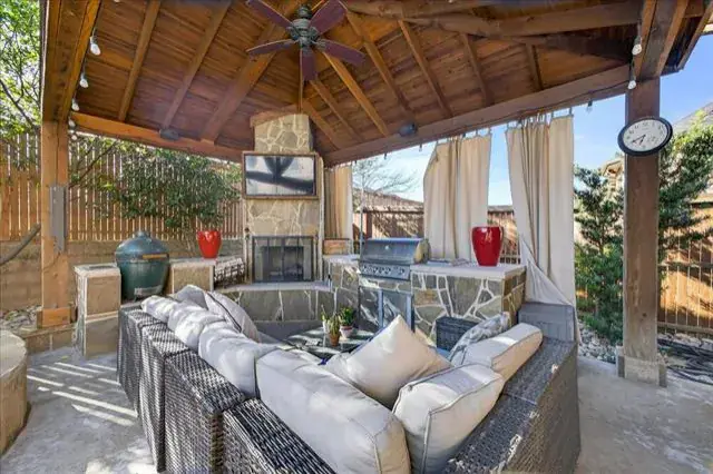 Attached Grill, Covered Patio/Porch, Gas Grill, Lighting, Outdoor Kitchen, Outdoor Living Center