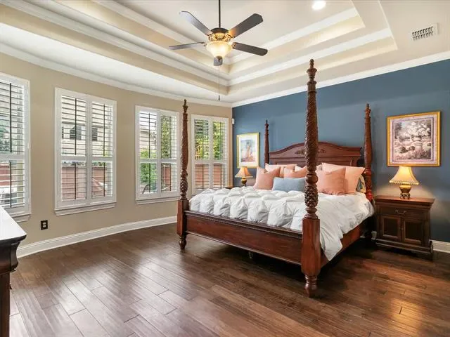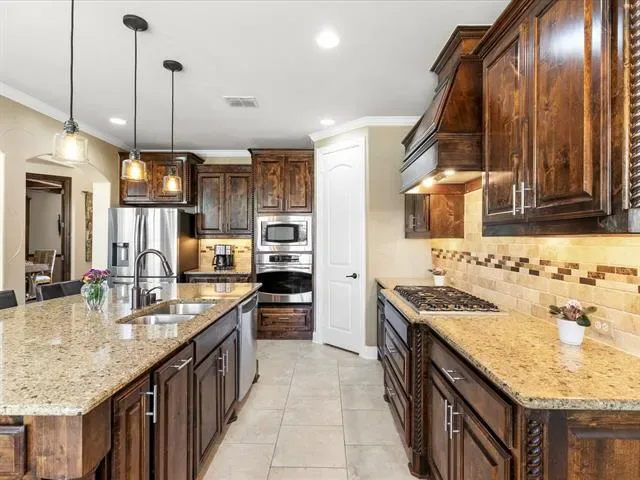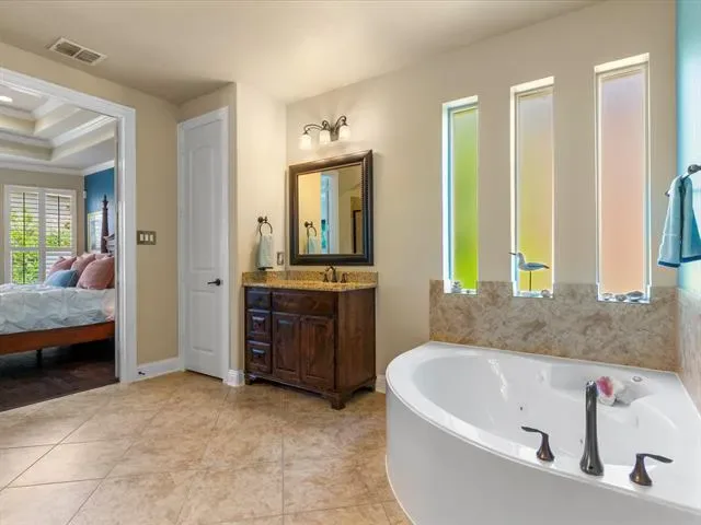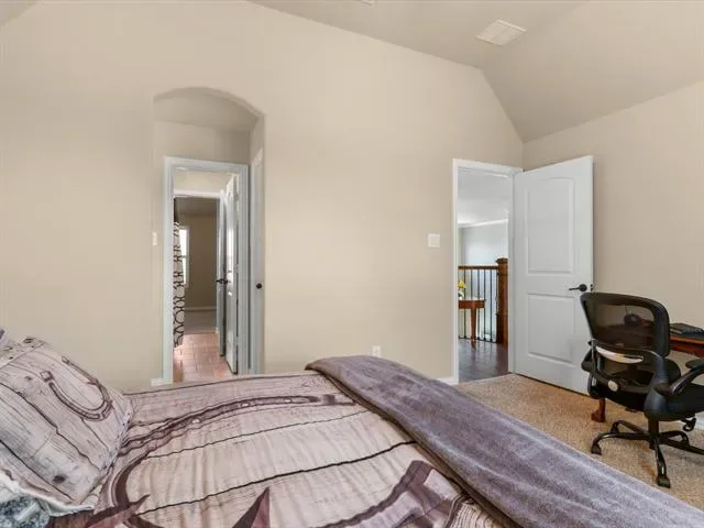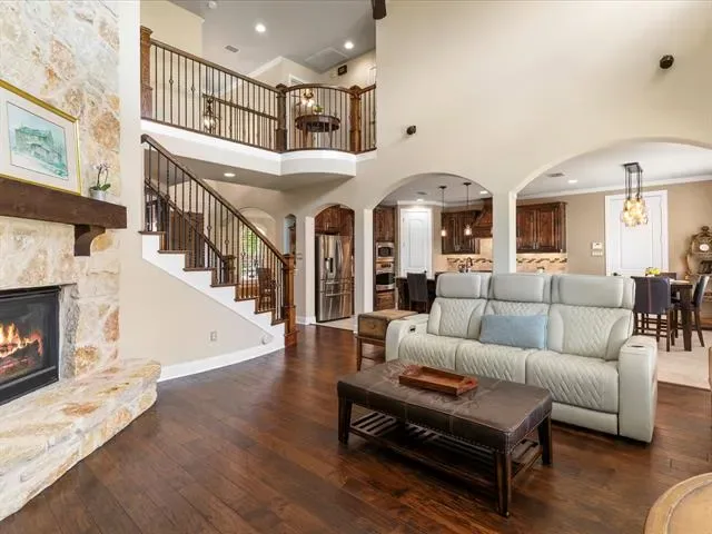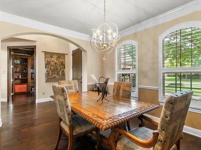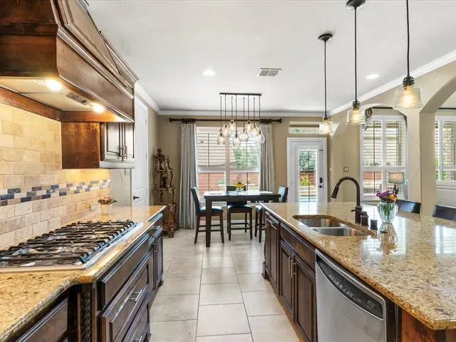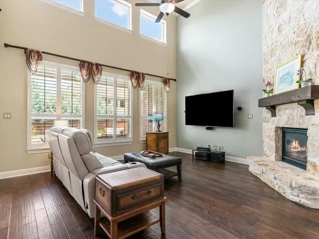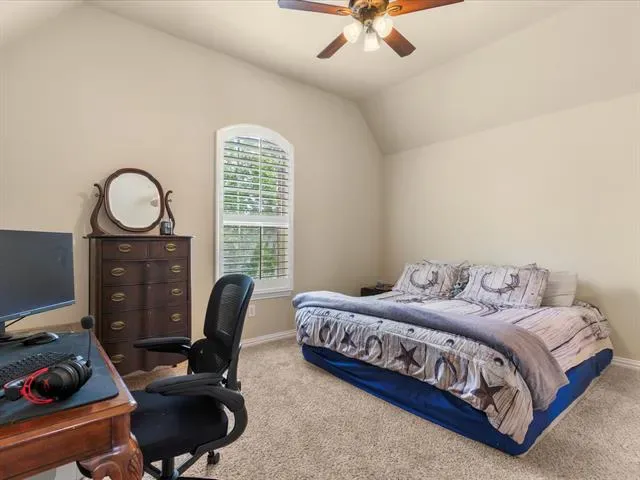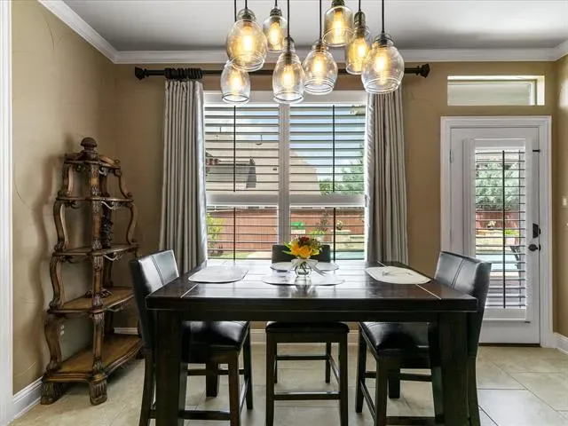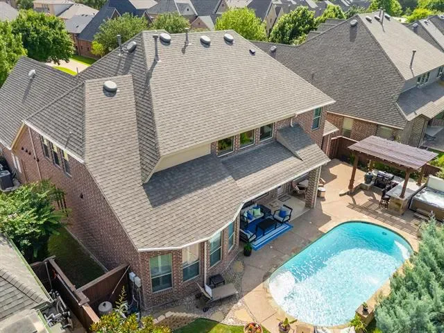 Nestled in the highly sought-after The Highlands at Trophy Club, this stunning 4-bedroom, 3.5-bath home offers exceptional curb appeal with lush landscaping, a side-facing garage, &' a timeless brick &' stone exterior. A charming front patio welcomes you inside, where plantation shutters &' thoughtful design details create a warm &' inviting atmosphere throughout. The versatile front formal dining space can easily serve as a playroom or additional living area, while the private office-complete with French doors, floor-to-ceiling built-ins, &' a striking coffered ceiling—provides the perfect work-from-home retreat. A powder bath down is convenient for guests. The open-concept living area features soaring ceilings, abundant natural light, &' a dramatic floor-to-ceiling stone gas fireplace. The kitchen is designed to impress with knotty alder cabinetry, granite countertops, a spacious eat-at island, gas cooktop, SS appliances, pendant lighting, &' a cozy breakfast area—perfect for everyday living &' entertaining alike. The private primary suite is a true retreat, boasting a tray ceiling, dual vanities, jetted tub, separate walk-in shower &' a generously sized walk-in closet. Upstairs you’ll find a versatile loft with hardwoods, built-in desk, 3 additional bedrooms &' 2 full bathrooms, offering plenty of space for family or guests. Carpet only found in secondary bedrooms. Step outside to your backyard oasis, where a covered patio overlooks a sparkling heated pool with water feature. Enjoy relaxing evenings under the pergola, complete with an outdoor kitchen &' hot tub. Extended decking provides beauty with minimal yard maintenance. Third bay garage offers a mini-split system that could make this space a great home gym, workshop or storage for your valuable toys. Conveniently located near 3 major employment campuses Charles Schwab, Fidelity Investments &' Deloitte University. Zoned for desirable Byron Nelson High School &' just minutes from Grapevine Lake.