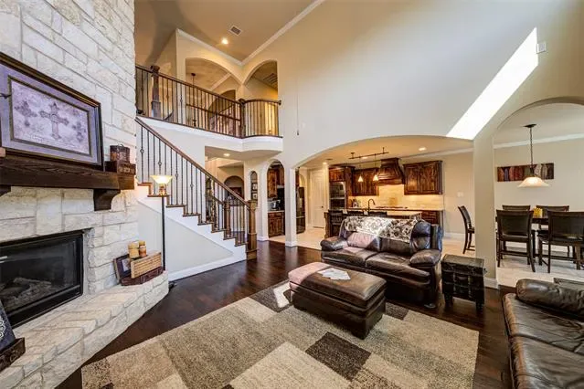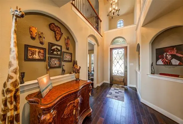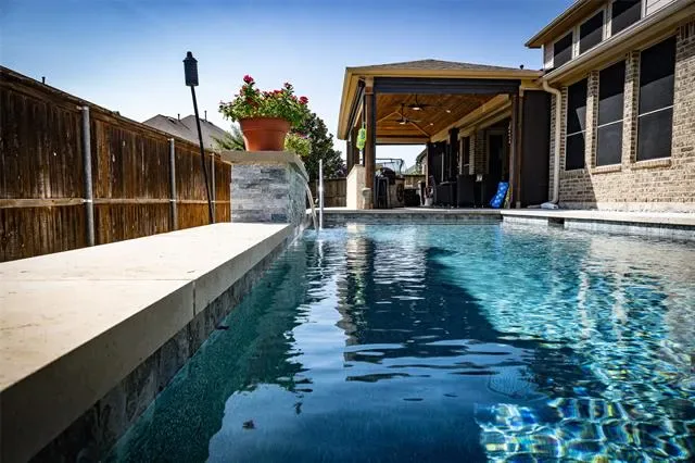 This gorgeous home is a home is a perfect blend of style and comfort, ideal for multi-generational living or today''s modern families. The backyard is a private OASIS. The NEXT GEN living space offers a private entrance with an additional living area, bedroom, bath, utility, kitchen and garage. Ideal for the IN-LAWS or an area for the teens. This floorplan provides 2 DOWNSTAIRS MAIN BEDROOMS. You will love the custom salt water heated pool. The CABANA that makes an enjoyable indoor-outdoor living area. This attached cabana measures 15'' x 33'' and includes electronic drop-down shades, stonework, stone counter, tv and more. This cabana makes an ideal indoor-outdoor living area. Inside custom on-trend finishes include hardwood floors, designer lighting and new mirrors, fresh paint, newer carpet, a fully equipped media room and more. On the main floor you’ll find a private office with French doors, generous living room with floor to ceiling stone fireplace and wall of windows overlooking the pool and covered patio. The fabulous kitchen offers an oversized granite island, top of the line appliances, a walk-in pantry, gas cooktop, double ovens. Also downstairs, enjoy the spacious breakfast room, laundry room, half bath. The primary bedroom and bath are the owner''s retreat with a luxurious upgraded &' enlarged multi-head rain shower, jetted tub, and walk-in closet. Upstairs are two secondary bedrooms which share a jack and jill bath, along with separate game and media rooms and one more half bath for convenience. The current owner added new upgraded carpet, new mirrors throughout, accent painting, extra overhead garage storage, enlarged the master shower to include multiple showerheads. New roof in 2026. The front yard offers custom designed landscaping for amazing curb appeal! Located close to world class shopping and dining just 15 min. west of DFW International Airport within the sought-after Golf community of Trophy Club and award-winning NWISD.