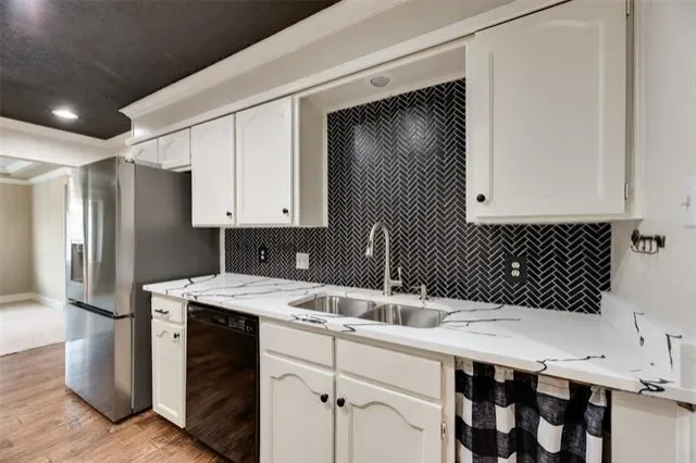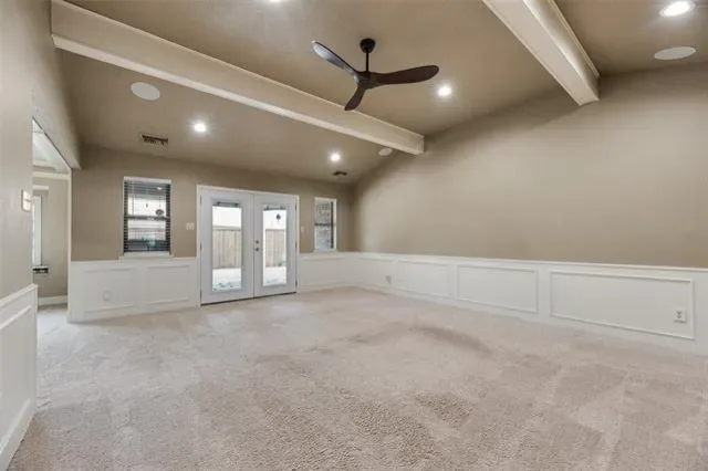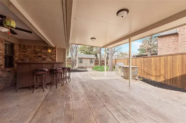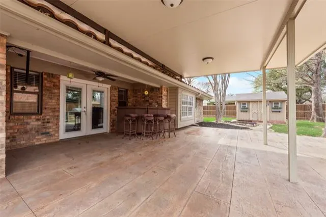 Charming 3-bedroom, 2-bath home in the heart of highly desirable Trophy Club! This inviting home offers a spacious living room centered around a striking floor-to-ceiling brick fireplace, creating a warm and welcoming gathering space. The dining room features a cozy window seat—perfect for enjoying natural light during meals. The kitchen is bright and functional with white cabinetry, updated countertops and backsplash, and a skylight that fills the space with natural light. The spacious primary suite showcases beautiful wood beams, three closets for abundant storage, and an updated ensuite bath with dual sinks, soaking tub, and separate shower. Generous secondary bedrooms provide plenty of space for family, guests, or a home office. Step outside to the covered patio with an outdoor kitchen—ideal for entertaining or relaxing evenings at home. Located within walking distance to Harmony Park featuring tennis and pickleball courts, and just minutes from Highway 114, Charles Schwab, Fidelity, plus excellent shopping and dining options. A fantastic opportunity to live in the heart of Trophy Club!