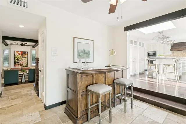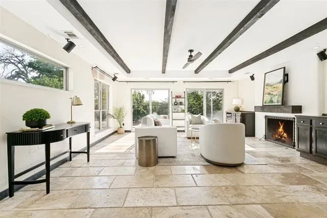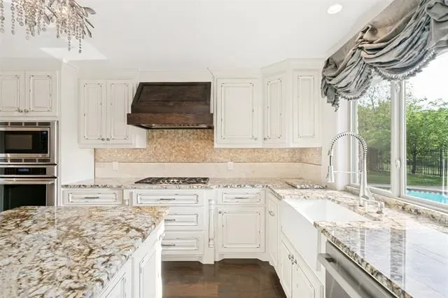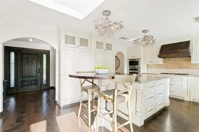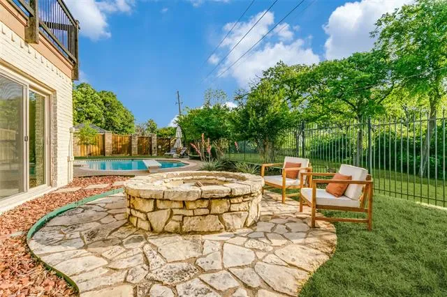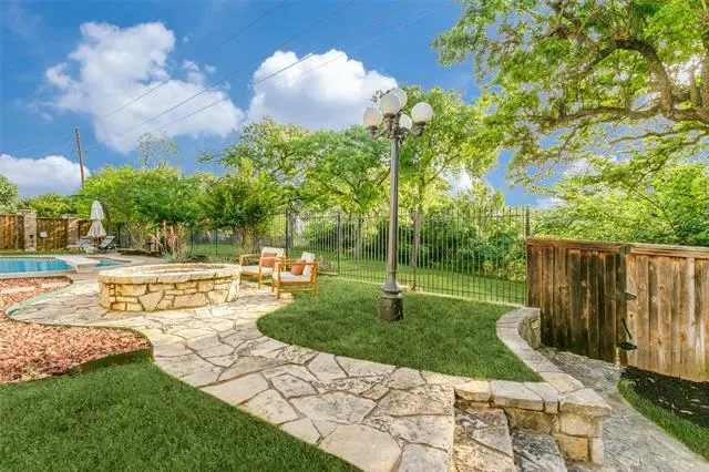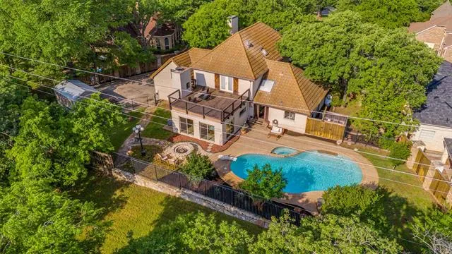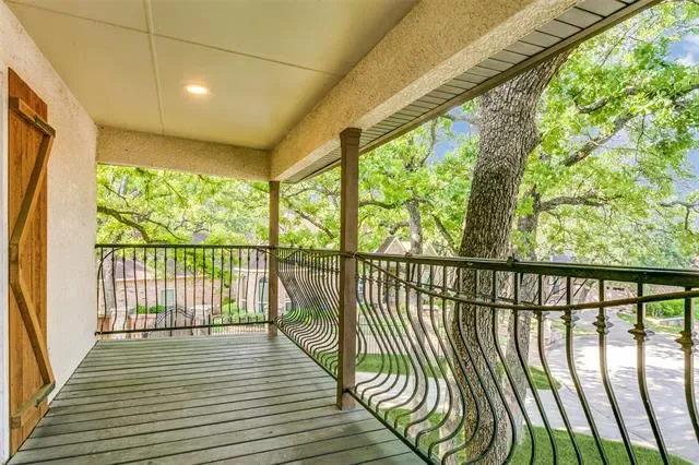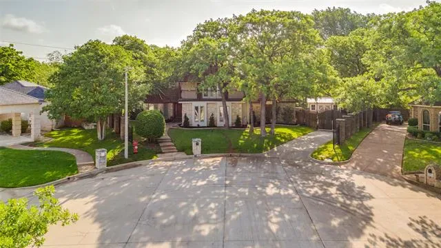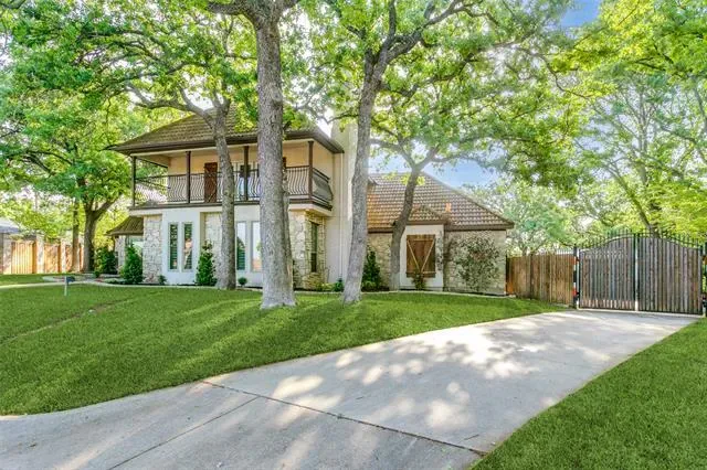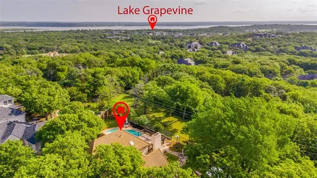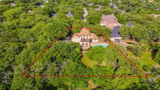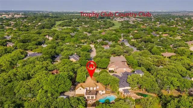Designed for entertaining and executive living, this exceptional custom home sits on a quiet cul-de-sac lot in the highly sought-after Town of Trophy Club and offers privacy, views, and no HOA. Backing to tranquil greenspace and surrounded by mature trees, the setting is quiet and secluded. Architectural character is on full display with dramatic archways, exposed wood beams, and expansive openings, complemented by two oversized living areas. The gourmet kitchen impresses with high-end appliances, custom millwork cabinetry, granite countertops, and an oversized island perfect for hosting. A well-designed layout offers 3 bedrooms and 3.5 baths, including a primary suite featuring a decorative fireplace and private balcony, along with a guest bedroom accessed by a separate staircase. Outdoor living shines with a pool, terraced garden, and a second floor roof deck with fireplace, ideal for stunning sunsets over Lake Grapevine and the DFW skyline. An automatic privacy gate provides added security and a secluded arrival. Enhanced with energy-saving upgrades, this home is energy-efficient with radiant barrier and Low-E windows. Perfectly placed for executive convenience, with quick access to the corporate campuses of Charles Schwab, Fidelity, and Deloitte, as well as premier shopping, dining, and DFW Airport. A rare Trophy Club offering that blends elevated entertaining spaces with executive convenience.