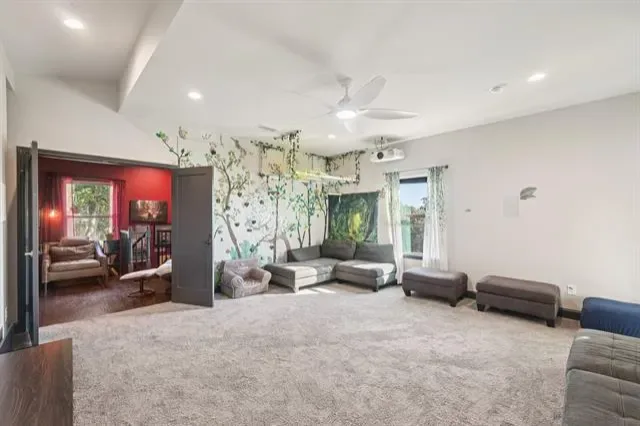 Traditional 5 bedroom, 4 full and 1 half bath home situated on a treed cul-de-sac lot in Trophy Club with a recently expanded (2023) footprint including a second primary suite, second library, game room, and a gym. Double iron doors welcome you and lead you to the expansive combination living and dining room with soaring ceilings and a see-through fireplace. Off the living is a bi-level library, with a spiral staircase that connects to the cozy second floor library. The adjacent family room is wired for surround sound and offers a see-through fireplace and wet bar. Opposite the living room is the well-appointed kitchen which features an island, electric cooktop, dishwasher, walk-in pantry, built-in desk, and adjoining breakfast room overlooking the intimate backyard oasis. A primary suite is located downstairs and boasts dual sinks, a soaking tub, separate shower, and walk-in closet. Rounding out the downstairs is a half-bath off the living room. Upstairs the second primary suite offers dual sinks with mirrored storage cabinets, decorative lighting, a designer tiled wet room featuring a soaking tub and spacious shower, a walk-in closet, and a balconette. Also upstairs is a gym with exercise flooring and a game room with surround sound speakers and projector. One of three secondary bedrooms connects via a Jack-and-Jill bath to the full-size laundry room with a murphy bed. The remaining two secondary bedrooms share three walk-in closets and a Jack-and-Jill bath. The dual primary suites make this home an ideal candidate for multi-generational living. Outside there is a soaking pool with waterfall feature and a pergola. There is also an enclosed covered patio with glass doors leading to the main living-dining area. Three car garage with additional parking and a manual gate. Please see full list of updates and improvements in the MLS Transaction Desk.