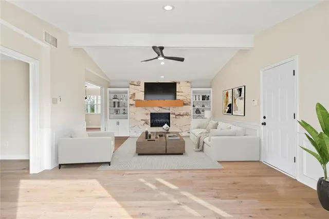 Beautifully remodeled 5-bedroom, 3.5-bathroom home designed with both comfort and functionality in mind. Thoughtfully updated from top to bottom, this move-in-ready property features brand new engineered wood flooring, fresh interior paint, new carpet in all bedrooms, new windows, updated light fixtures, and modern hardware throughout. Designed for everyday living and entertaining, the versatile floor plan includes multiple living areas that provide space for gatherings, movie nights, or a secondary lounge. The layout offers two bedrooms downstairs and three upstairs, including the primary suite. All bathrooms have been completely renovated with fresh, timeless finishes, and the primary suite features a new soaking tub and separate walk-in shower, creating a relaxing retreat. The spacious backyard provides plenty of room for kids, pets, or weekend entertaining, while the extended driveway offers additional parking for guests. A built-in wet bar adds charm and convenience, making it easy to host holidays and special occasions. With extensive updates and room for everyone to spread out, this home blends modern style with everyday livability.