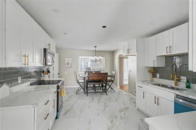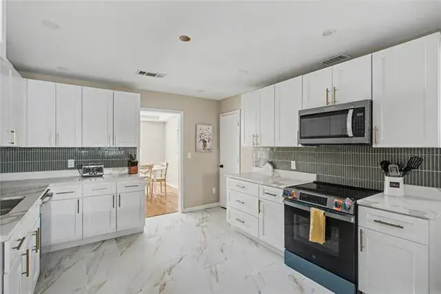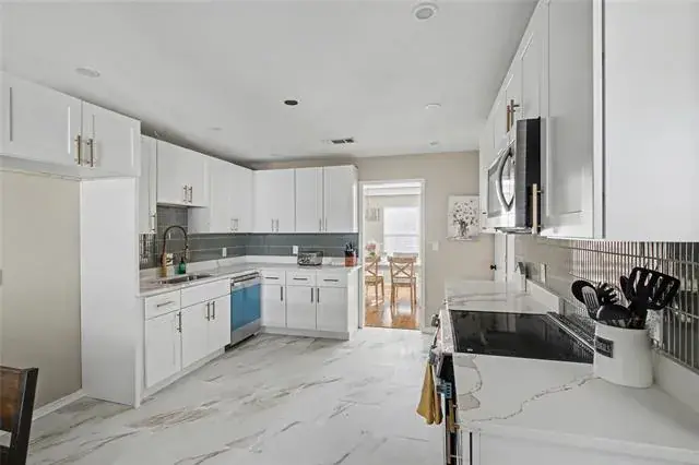 At the heart of the home is the newly renovated modern kitchen, featuring brand-new appliances, upgraded finishes, and ample cabinetry—perfect for everyday meals or hosting gatherings.