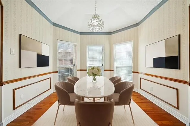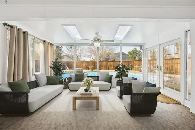 Welcome home to this move-in ready gem in the heart of Trophy Club Village! This beautifully cared-for 3-bedroom, 2-bath home offers a warm, inviting feel from the moment you walk through the door, with rich wood floors &' a spacious living room anchored by a charming brick fireplace and eye-catching coffered ceilings. Kitchen is thoughtfully designed for both everyday living &' effortless entertaining, featuring an island, abundant cabinetry, granite + SS apps. You’ll appreciate the versatility of a formal dining room with beautiful bay windows, along with a sunny breakfast nook that’s ideal for relaxed mornings and coffee-filled starts to the day. One of the standout spaces is the incredible sunroom, filled with natural light from a wall of windows overlooking the backyard and sparkling pool. Whether you envision a playroom, game room, or second living area, this versatile space offers direct access to the backyard. The primary suite is a peaceful retreat, complete with vaulted ceilings and a beautifully updated ensuite bath featuring dual sinks, a separate shower, and a stunning freestanding soaking tub. Two additional bedrooms provide comfortable space for kids, guests, or a home office. A large utility room with extra storage keeps everything organized and out of sight. Step outside and discover your own private backyard oasis. The expansive pool with diving board and generous patio space sets the stage for unforgettable summer afternoons and weekend barbecues. Two storage sheds offer plenty of room for tools and outdoor gear. The garage, finished with interlocking tile flooring, adds a polished and practical space for projects, hobbies, or extra storage. Zoned to the award-winning Northwest ISD, this home delivers the perfect balance of small-town charm and big-city access. With Trophy Club’s golf cart-friendly streets and strong sense of community, this is more than just a house, it’s a place to grow, gather, and create lasting memories.