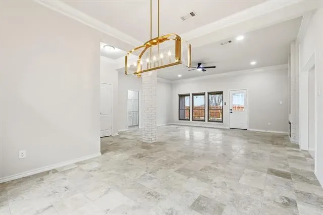 Discover elevated living in this beautifully updated 3-bedroom, 2.5-bath home in the heart of Trophy Club. Designed with an open-concept layout, the main living area showcases travertine floors, electric fireplaces, and seamless flow for entertaining. The private primary suite is a luxurious retreat featuring new carpet, a tray ceiling with chandelier, and a newly renovated spa-like bath with dual vanities and a spacious walk-in closet.