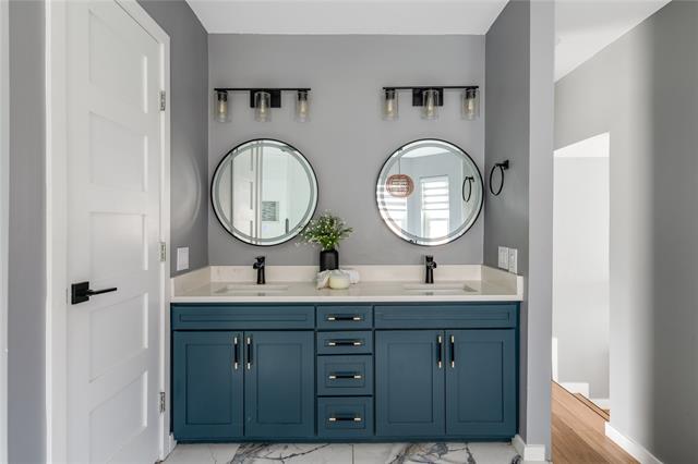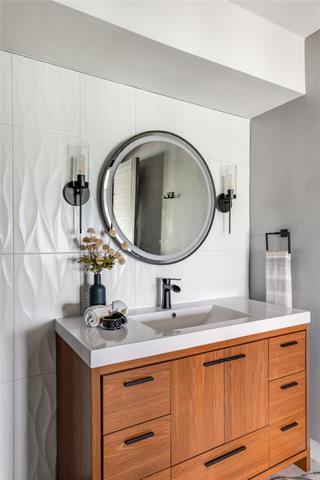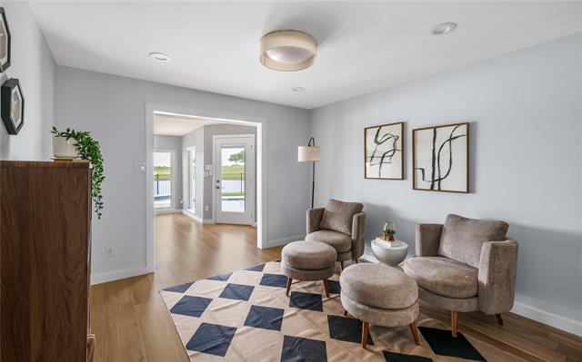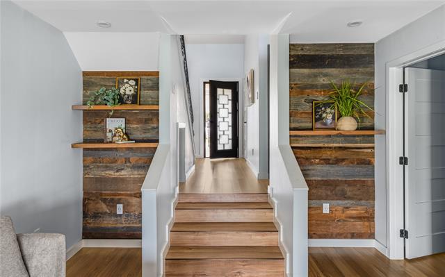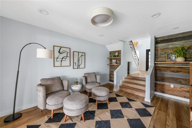 Inside, the home has been completely reimagined and it goes beyond expectations. The layout flows with intention. Smooth walls, seamless flooring, and thoughtful details like a wood accent wall and sculptural tile create interiors that feel both elevated and livable. The reimagined kitchen is striking and timeless, with quartz counters and a deep navy backsplash that opens into living spaces designed for refined entertaining or a slow Sunday morning with the fairways as your backdrop. A versatile flex space, equally suited as an office, sitting room, or whatever the moment calls for, adds another layer of livability to an already thoughtfully designed home.