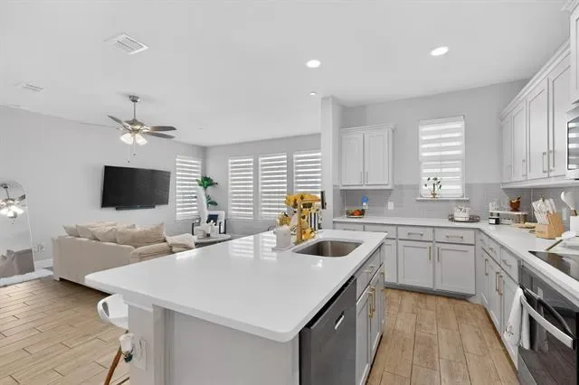 Beautiful newer-construction townhome in a prime Watauga location within highly sought-after Keller ISD. This thoughtfully designed two-story home offers an open-concept layout ideal for everyday living and entertaining. The spacious kitchen features a large island, walk-in pantry, and flows seamlessly into the dining and living areas.