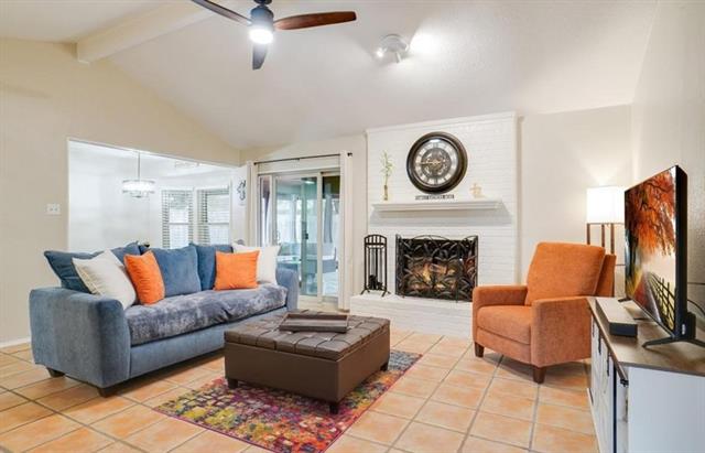 Charming one level home in Keller ISD with additional screened-in living space! Traditional split bedroom arrangement in this 3-bedrooms 2- baths 2-car garage home! Abundant parking and storage featuring 2 additional covered parking spaces under carport, one more uncovered concrete pad large enough for boat, and storage sheds in back. Pristine living features brick vaulted ceilings, fireplace, Saltillo tile floors. Enjoy solid surface floors here throughout – no carpet – and calming paint selections on walls. Kitchen features granite counters, tumbled marble backsplash, modern wood painted cabinets & a newer appliance package! Fairly recent HVAC and attic insulation in February 2024. Newer energy efficient vinyl windows throughout. No HOA here! This home can be a turn-key move-in experience with washer-dryer set and refrigerator and storage sheds included. Lawn sprinkler system. With ‘everything included’ and in this amazing shape, this won’t last long!