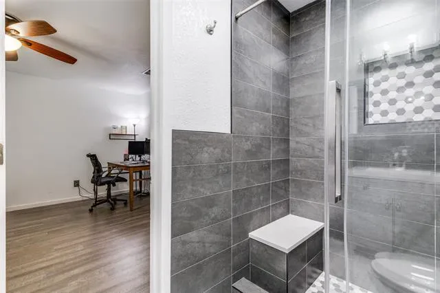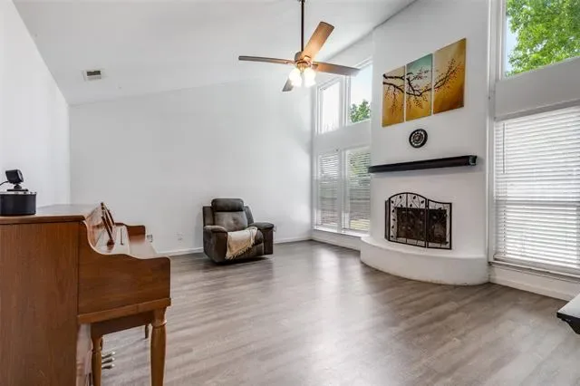 Step inside to find an inviting living area with a vaulted ceiling and updated luxury vinyl plank flooring throughout the entire home, along with recently installed windows that bring in great natural light and support energy efficiency. The updated bathrooms feature custom tile work, adding a stylish, modern touch.