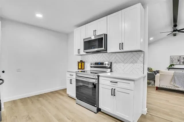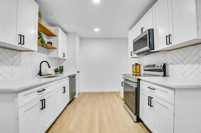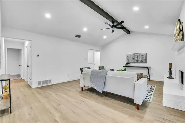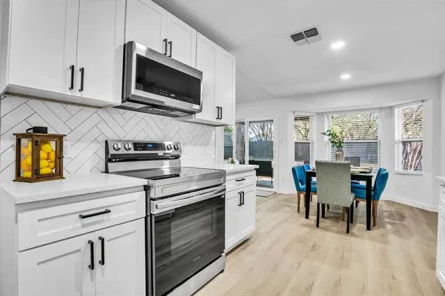 Welcome to this beautifully remodeled 3-bedroom, 2-bath home with a 2-car garage, ideally located in the highly sought-after Keller Independent School District. This move-in-ready property offers a perfect blend of modern style, comfort, and functionality. Step inside to an open-concept layout featuring vaulted ceilings, and a cozy fireplace. The fully updated kitchen boasts new cabinetry, quartz countertops, and brand-new stainless steel appliances—perfect for everyday living and entertaining. Recent upgrades include New windows! New sliding patio door! New luxury vinyl plank flooring! New carpet New light fixtures! New rain gutters! New 2 inch blinds! Fresh interior and exterior paint, and upgraded faucets throughout! Both bathrooms have been fully renovated! Major system updates include a new HVAC system and a new roof, providing added peace of mind. Enjoy outdoor living in the private backyard with a covered patio—ideal for relaxing or hosting gatherings—plus a storage shed for added convenience. Conveniently located just minutes from Foster Village Park, shopping, dining, and entertainment! This home truly has it all—don’t miss your opportunity to make it yours!