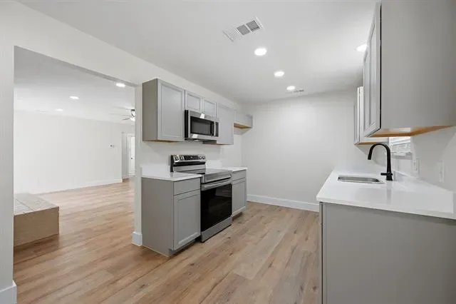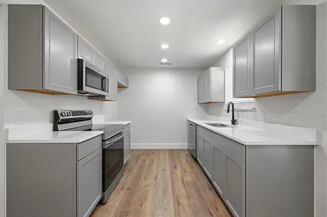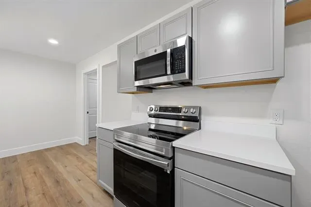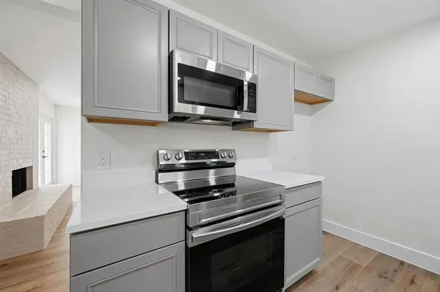 Step inside to find high-quality luxury vinyl plank flooring that runs seamlessly throughout the home, creating a modern and cohesive feel. The kitchen is equipped with stainless steel appliances, including a range, microwave, and dishwasher, making it both functional and inviting.