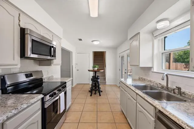 ***MOVE-IN READY WITH FRESH INTERIOR AND EXTERIOR PAINT, NEW CARPET, NEW FLOORING IN BATH, NEW ELECTRIC RANGE, AND UPDATED LIGHT FIXTURES *** Welcome to 8036 Berrybrook Drive, a well-kept home in Watauga’s sought-after Foster Village neighborhood. This three-bedroom, two-bath residence features a warm, functional layout ideal for everyday living. The cozy living area centers around a wood-burning fireplace, while the eat-in kitchen is equipped with a brand-new electric range, microwave, and dishwasher for easy meal prep. The spacious primary suite includes an ensuite bath and generous walk-in closet and is large enough for a sitting area or office space. Secondary bedrooms are equally comfortable, with one offering its own walk-in closet—perfect for guests or a home office. Step outside to a covered deck and a backyard with space to relax, play, garden, or entertain. The two-car garage includes a large storage room for tools and seasonal items. Located near top dining and shopping, this home also falls within the highly rated Birdville ISD and is just a short walk to Foster Village Park. Whether you''re a first-time buyer or looking to settle into a welcoming community, 8036 Berrybrook Drive offers comfort, convenience, and charm.