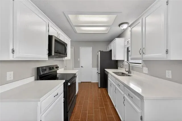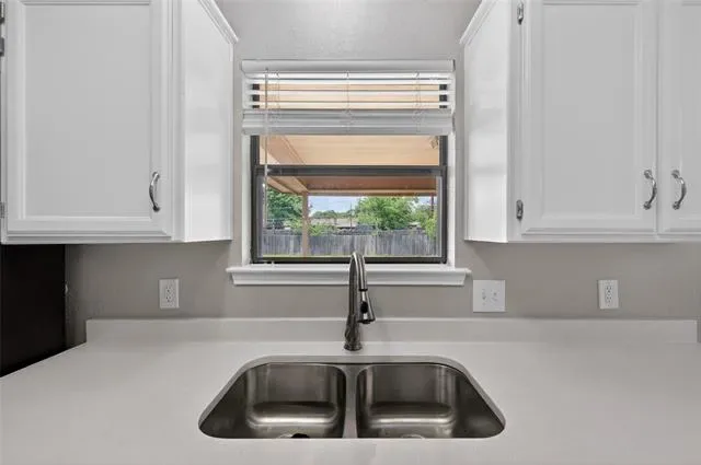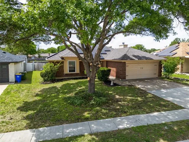 OWNED SOLAR FOR BIG MONTHLY SAVINGS! Beautifully updated single-story home with a clean, fresh feel throughout. The mature front tree creates inviting curb appeal, &' the sidewalks on both sides of the street add to the welcoming streetscape. Inside, you’ll find wood-look tile floors, crisp white finishes, tray ceilings, detailed molding, &' a spacious living room anchored by a classic brick fireplace. The layout flows easily into the kitchen &' dining area, where white cabinets, quartz counters, stainless steel appliances, a separate walk-in pantry &' backyard views make the space feel bright, functional, &' inviting. NO CARPET! Luxury vinyl tile in the front entry leading to luxury vinyl plank in bedrooms.
