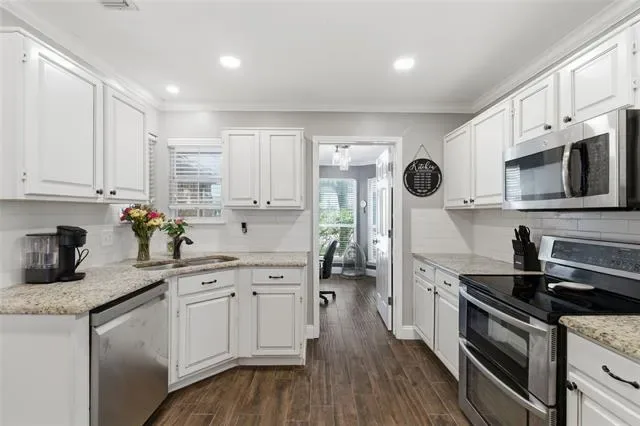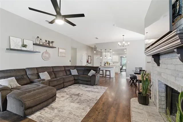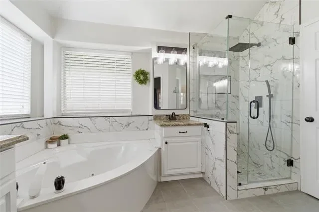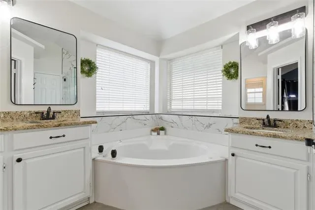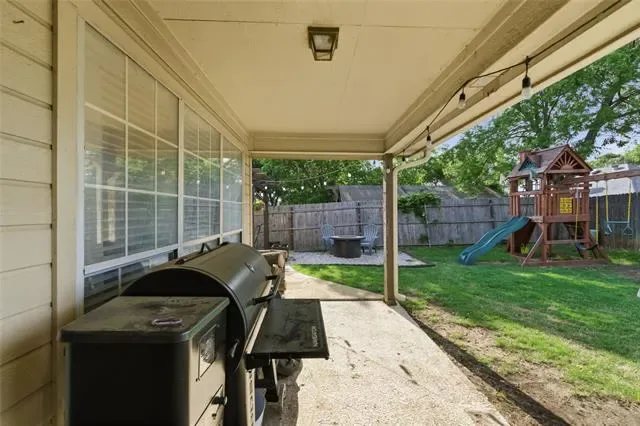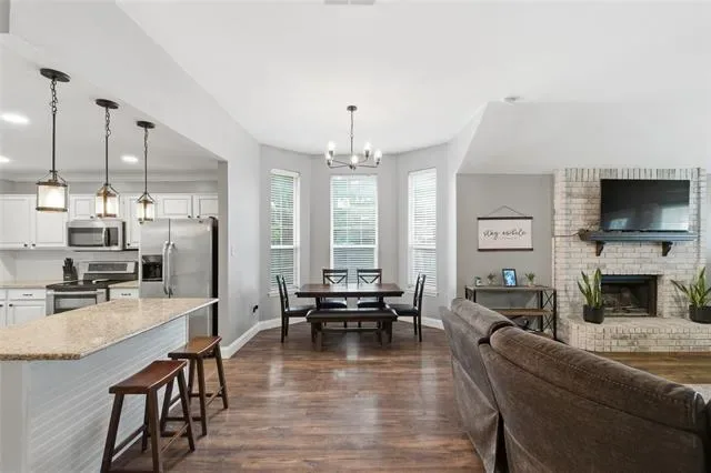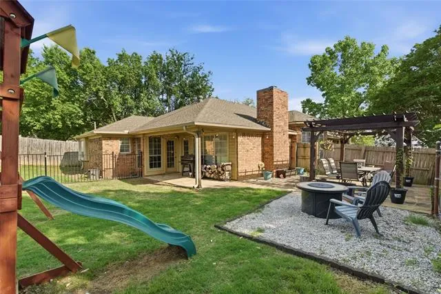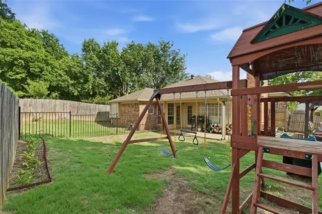 Welcome to your meticulously updated home in Watauga! This one is the perfect blend of contemporary style and everyday comfort, offering you big-ticket peace of mind thanks to the brand-new HVAC system installed in 2025! Step inside to discover a seamless open floor plan highlighted by dark wood-look flooring, recessed lighting, and an inviting color palette. The heart of the home is a dream kitchen featuring sleek white cabinetry, stunning granite countertops, an updated island, and top-tier stainless steel appliances, including double ovens. Entertain effortlessly in the family room, anchored by a striking whitewashed brick fireplace, or work from home in the dedicated front study surrounded by natural light from the beautiful bay windows. Retreat to the primary suite, offering a fully transformed spa-like bathroom complete with dual granite vanities, a corner soaking tub, and a magnificent frameless glass shower with marble-look tile and dual showerheads. Step outside to your private backyard oasis featuring a covered patio, freestanding pergola, a fire pit area, dog run separated by a sleek metal fence, and an extended patio area perfect to enjoy our spring evenings. Zoned for highly sought-after Keller ISD. This turnkey masterpiece won''t last long—schedule your showing today!
