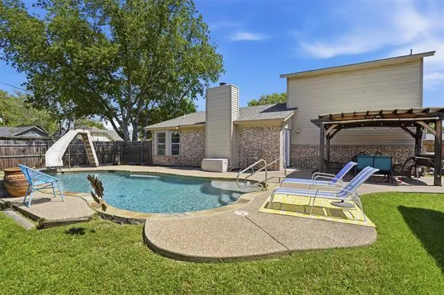 Remodeled beauty on corner lot with pergola & inground Pebble Tech pool with slide in Birdville ISD! Newer carpet, tile, paint throughout, roof & granite countertop in primary ensuite bathroom. Built-in, eat-in kitchen with granite countertops & tile backsplash & bay windows. This beautiful home also features wood laminate flooring, tile floors, Ring doorbell, Tuff shed, walk in closets, wood-burning fireplace with raised brick hearth & wood mantel in living room with beamed ceilings, open patio at private, spacious backyard, extended driveway for extra parking, wood fence, enclosed garage which offers spacious family room! HVAC unit approximately 3 years old per seller. NO HOA! Quick access to Dallas, DFW Airport, downtown Fort Worth, schools, shopping, dining & main thoroughfare access for easy work commute. Offering ample square footage & 2 spacious living areas with multiple uses makes this stunner the perfect place for entertaining inside & outside + relaxing poolside & soaking up your slice of paradise. Just in time for summer! Welcome home!
