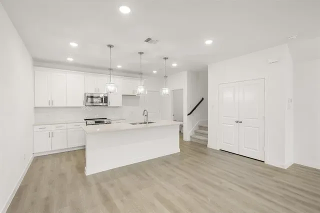MLS# 21196665 – Built by Ashton Woods Homes – Ready Now! ~ Welcome to the Tulane, a thoughtfully designed two-story townhome in Watauga, TX. Designed with the Timeless Collection, this home features crisp whites and soft neutrals. Nine-foot ceilings enhance the openness, while a welcoming foyer, additional storage, and a two-car garage add practical convenience. The first floor is the heart of everyday living, featuring a bright, open-concept layout with a modern kitchen centered around a spacious island, shaker-style cabinetry, tile backsplash, and ample countertop space. The kitchen flows seamlessly into the dining and family areas, creating an inviting environment perfect for hosting or daily routines. Upstairs, two secondary bedrooms share a full bathroom, offering an ideal setup for family, guests, or a dedicated workspace. A versatile loft provides even more flexibility, whether as a media nook, play area, or home office. The private primary suite completes the second floor with a generous walk-in closet, double sink vanity, and a glass-enclosed walk-in shower. With its thoughtful use of space, elevated finishes, and flexible living areas, the Tulane delivers the modern comfort and refined style that define Ashton Woods living.