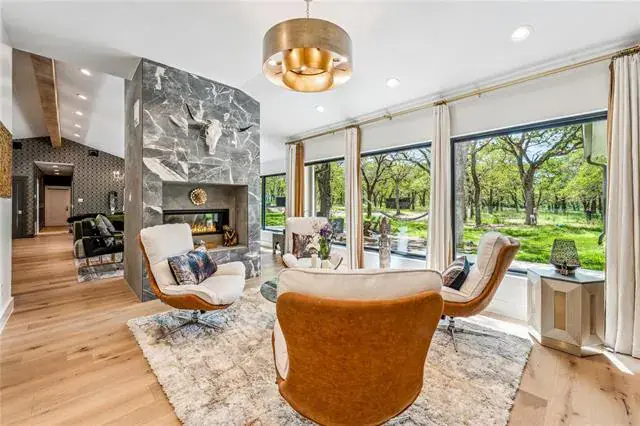 This Residential masterpiece is fit for a King. It combines quaint country charm with contemporary elegance and all within a very short drive to top dining and shopping opportunities. The three acre property features 5 bedrooms, 6 full baths, an oversized second story flex room, gated entrance, large backyard space with mature hardwoods, sauna, hot tub, open floor plan, large windows, quartz countertops, high end appliances, well thought out interior design, top rail fencing for horses with loading sheds, and much more. You don’t want to miss the opportunity to experience this country paradise conveniently located to access all the amenities town has to offer. lease offered MLS # 20680415