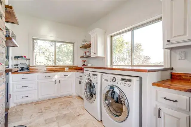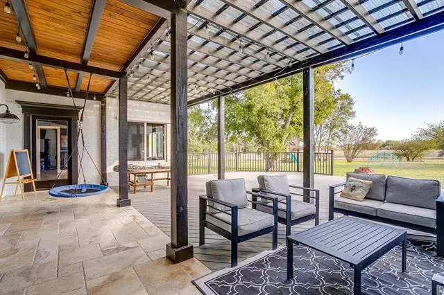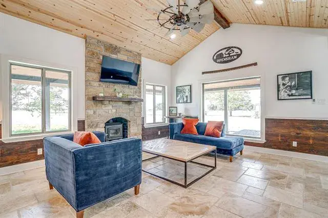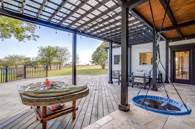 Family Compound Property – No Restrictions! If you are looking for Character, Charm & History without losing modern day luxury, efficiency & layout then you’ve found it here in Peaster ISD! This solid 1947 build has been lovingly remodeled to current code & efficiency that affords you incredibly low electricity monthly bills. Without losing the square footage & privacy for your family. Downstairs offers 2 Living areas, wood burning fireplace for those cold weather days, oversized Dining Room space & huge open layout kitchen with vaulted ceilings for added wow factor when entertaining. 3 downstairs bedrooms offer easy accessibility – both guest bedrooms downstairs are 16FT by 16FT. Primary suite downstairs offers a huge ensuite full bathroom with walk in shower & separate soaker tub (full size!) with double vanities & closets. Upstairs is a self contained living space, perfect for family members looking for space or longer staying guests! Full bathroom, large bedroom with its own walkout balcony & double closets, large living area with kitchen. Entertaining space is large enough for any party your heart desires with the covered back patio overlooking the spacious shaded yard. Want a change of scenery, relax on the full length covered front porch overlooking the 2nd well on the property at the authentic Windmill. Front Orchard offers peach & cherry trees as well as large producing Pecan trees scattered throughout. Three RV hookups on the property, 1x 30amp, 2 x 50amp (separate locations). 2 level areas for Arena install. Great area to install a Pool by the back deck. Easily cross fence for rotational horse turnout pastures. 2000sqft shop (45×45) with power can cater to all your hobby desires, especially with its fully enclosed workshop room, that can also serve as a storm shelter space. Second barn (20×40 800sqft)- currently used as a run in shelter for livestock & horses has a concrete base, power & water. Can sell house with 5.5, 10 or 22 acres. Appraisal in hand.