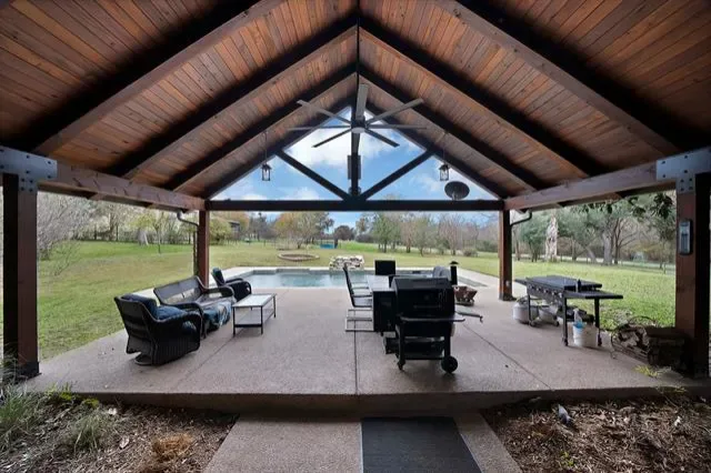 Welcome to this multigenerational property that is perfectly designed for comfort, function, and opportunity. Nestled behind a beautifully tree-lined driveway sitting back off a country road, this spacious home features expansive front and back porches that are ideal for relaxing or entertaining alongside the stunning pool. It also offers nature lovers many opportunities with all the wildlife, wild fruit bushes and trees, a tank and tons of land for livestock or gardening. There is plenty of room for an arena to be built. The main house offers 4 bedrooms with 3.5 bathrooms, 2 living and 2 dining areas. The custom barndominium ,being the second home on the property, offers an open concept living and kitchen with 3 bedrooms and a large bathroom with a utility room. There is a large barn, 5 stalls, corral, and a vast pasture with a tank and well out in the pasture. With three water wells, agricultural tax exemption, and no known restrictions, this property offers true flexibility for a variety of uses. Bring all the animals and enjoy your own ranchette or make it into an income producing investment property. Additional features include a chicken coop, an indoor and outdoor dog kennel, a dedicated dog grooming space, and a large workshop. Whether you’re seeking a peaceful country lifestyle, a multigenerational retreat, a place to call home with multiple shops and plenty of room to add on or an investment property, the possibilities here are truly endless. So many possibilities with all the land and terrain. Game feeders, hunting blind, chutes gates, 3 safes, all tv''s, washer and dryer, refrigerator, and front porch swing all convey. With all this and more to offer come and make this your dream home! Come out to see what all this property has to offer.