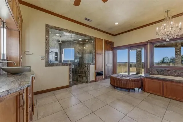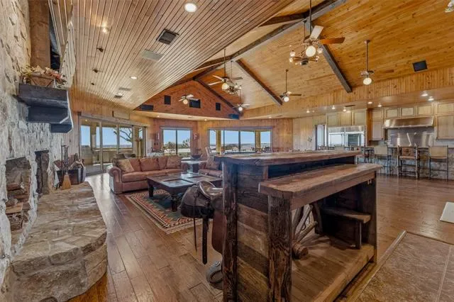 Perched atop one of the highest vantage points in Parker County, this extraordinary gated estate captures breathtaking panoramic views and offers a rare blend of luxury living and world-class equestrian amenities. Designed for both grand-scale entertaining and refined ranch living, the impressive 10,438 sq ft custom residence showcases thoughtful architecture, expansive living spaces, and exceptional craftsmanship throughout. Large windows frame the sweeping countryside while generous gathering spaces provide the perfect setting for hosting family, friends, or large events.