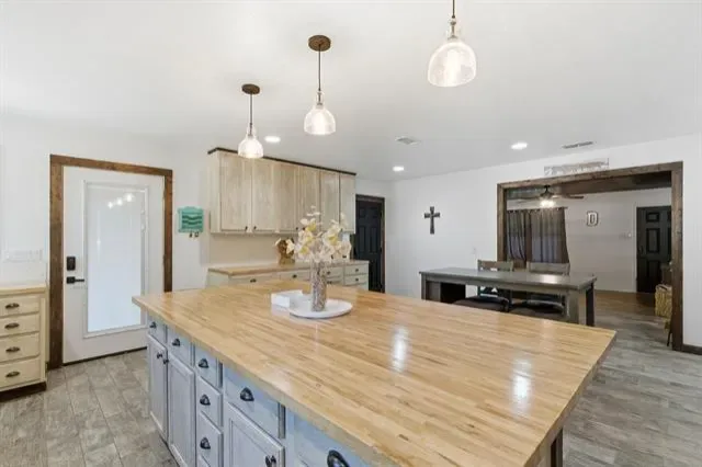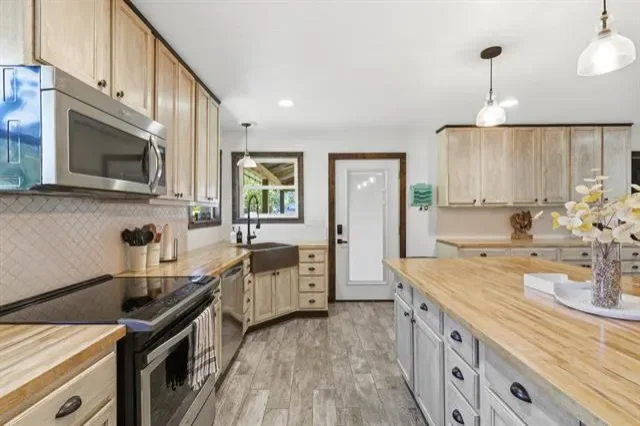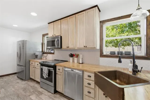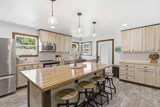 Located in Weatherford, TX within the highly rated Peaster ISD, this updated 3-bedroom, 2-bath home offers a perfect blend of modern design and peaceful living. The open layout features neutral tones, stylish finishes, and a bright kitchen with stainless steel appliances and butcher block countertops. Outside, enjoy a large carport, barn, shed, RV hookup, and a cozy outdoor fire ring — perfect for cool Texas evenings. Surrounded by mature trees, this private property offers plenty of space to relax and unwind. Horses are welcome, too! Seller will remove existing pens and restore the area with grass at the buyer’s request.