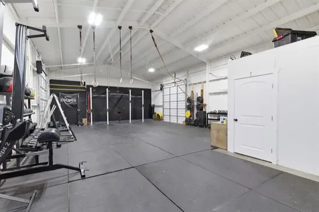 The property also includes a 1500 sq ft workshop with electricity currently functioning as a functional fitness gym with a batting cage. With minimal deed restrictions and location outside city limits, the space offers excellent potential for a home business, training facility, gym, workshop, or sports practice area.