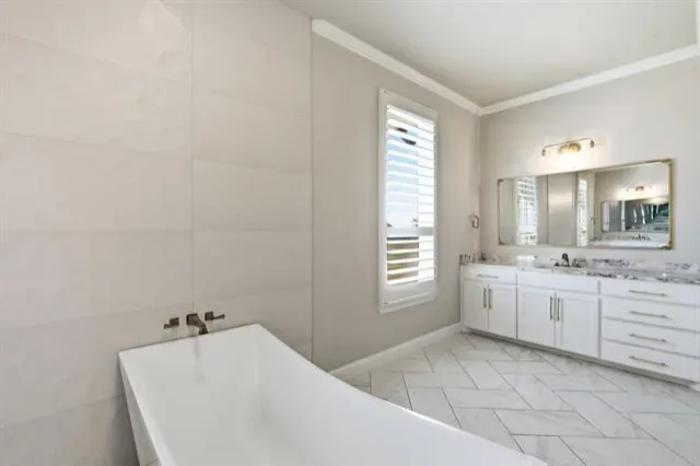 The private primary retreat features dual oversized closets, separate vanities, soaking tub, spa-style bath, and an infrared sauna.