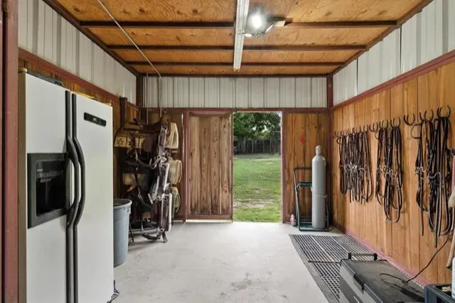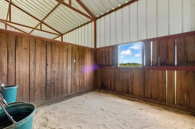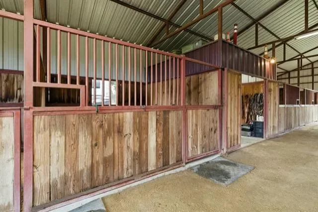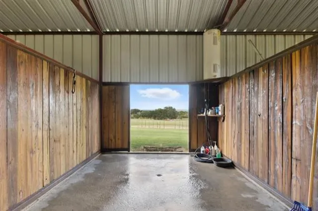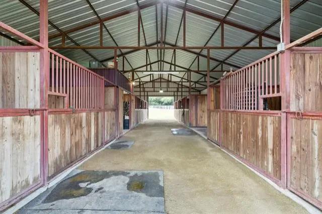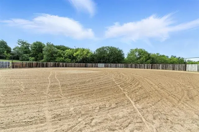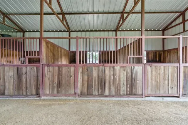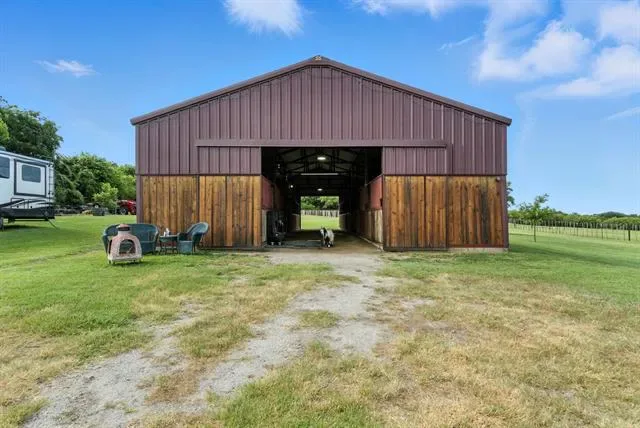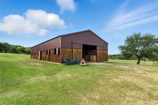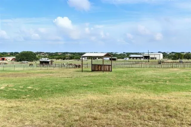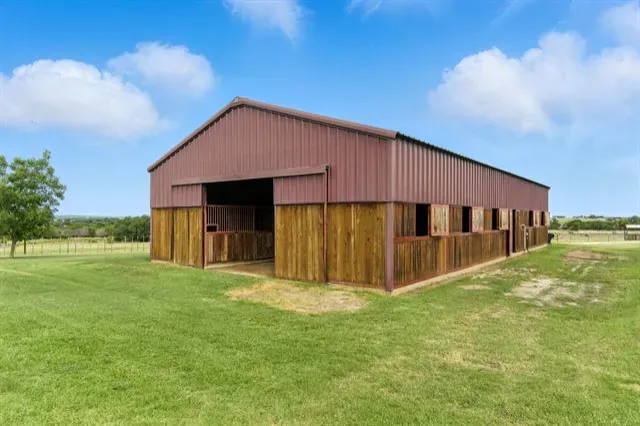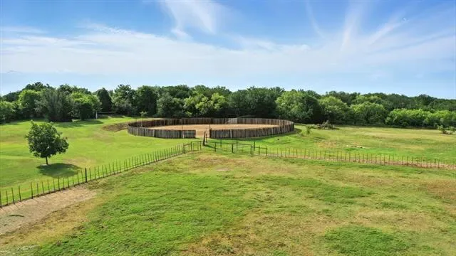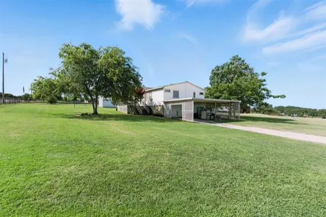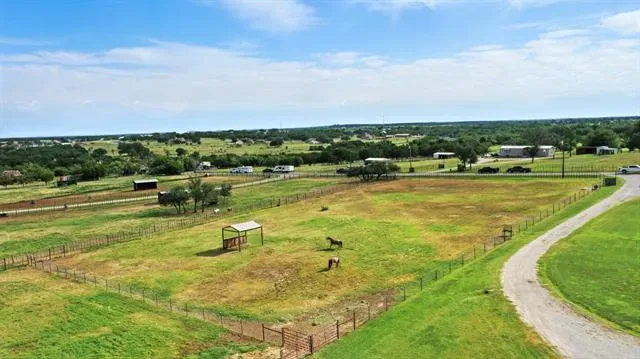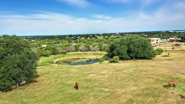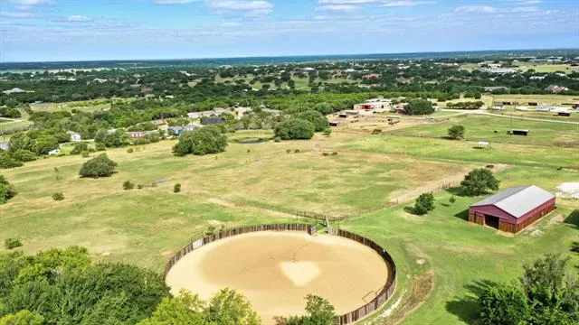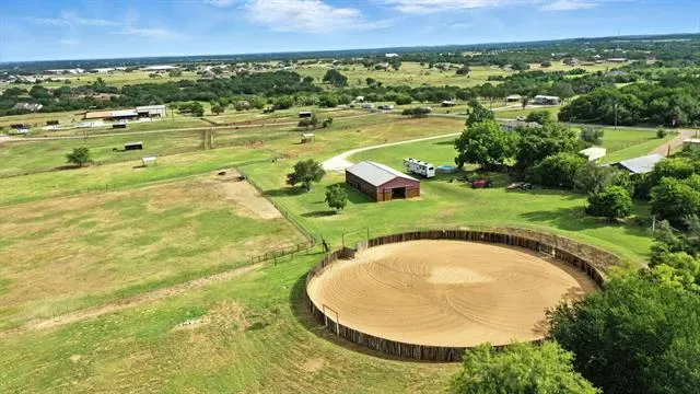 16.647 acre horse property next to Silverado on the Brazos. Discover an exceptional equestrian property just outside the gates of Silverado on the Brazos without the HOA, deed restrictions, or easements. This 16.647 acre horse setup is thoughtfully designed for managing broodmares and foals and is ready for you to build your dream home with panoramic views of the Brazos River Valley and the surrounding ranchland. The property includes a 40 by 70 show barn with 10 stalls measuring 12 by 12, each with front and back windows for maximum airflow, along with a hot water wash rack, tack room, and 220 amp RV plug. There is a 140 foot round pen and the property is cross fenced into 7 pastures, all in Coastal Bermuda, with slick wire and horse friendly mesh fencing in excellent condition. Each pasture is equipped with freeze proof water spigots. Additional features include a quarter acre stock pond and two water wells supplying water for livestock and domestic use. The home is a 2000 model double wide manufactured home offering 2,128 square feet with 4 bedrooms and 2 baths, along with a covered 2 vehicle carport, and is set among mature live oaks providing shade and natural beauty. The land features sandy loam soil ideal for horses and hay production with gently rolling topography and views of the Brazos River and Silverado. The property is located on a cul de sac for added privacy. No deed restrictions, no HOA, and no known easements. This is a rare opportunity to own a turnkey horse property with neighboring ranches, strong infrastructure, and the flexibility to make it your own in Parker County horse country.