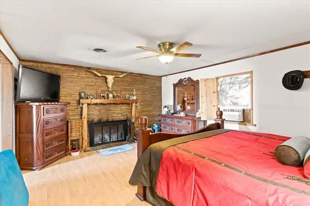on the walls and floors. There are french doors leading from the living area to the large covered porch that is perfect for your family and friends BBQ’s. The kitchen has a long breakfast bar and enough size for a table that can seat 12. The master is cowboyed up with a brick wall with a fireplace for extra cozy nights. There is ample parking for your vehicles, trailers and recreational vehicles as well as RV parking and hookups. You can make it your new home or live in it while you build a larger home or perhaps the emphasis would be to change the use of the land to use for industrial or commercial purposes. What ever you choose it is an ideal location. The property next door is a 5 acre Horse Trailer Lot and the property that just sold on the other side of it is set up to be small Industrial park. The property is flat and fenced and cross fenced and has a barn and a 24×42 workshop with 220 electric