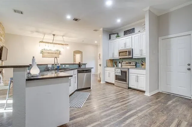 Nestled in one of the most picturesque, tree-filled pockets of Parker County, this lovingly maintained home offers a peaceful country setting with easy access to city amenities. The single story functional layout offers 6 bedrooms plus an office with spacious living and dining spaces and a beautiful 1.5 acre lot with seasonal creek. Located across from a large acreage tract, spread out and enjoy your property located outside city limits with no restrictions and a low 1.9% tax rate. Other highlights include LVP flooring, stainless steel appliances, granite countertops throughout, new roof (Oct 2025), new outdoor deck (2026), and a cozy stone wood-burning fireplace. Zoned for Springtown ISD, it’s an easy commute to Azle, Weatherford, or Springtown. 40 minutes to Lockheed, under an hour to DFW. Don’t miss this chance to escape the city hustle and bustle without giving up community connection.