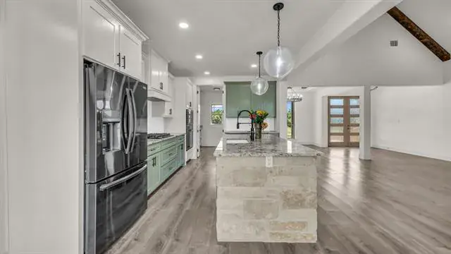 Decorative Lighting, Eat-in Kitchen, Kitchen Island, Open Floorplan, Pantry, Vaulted Ceiling(s), Walk- In Closet(s)