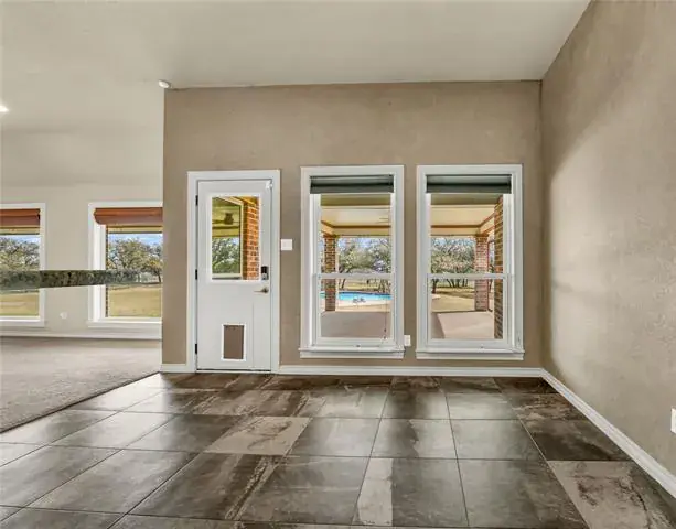 Welcome to beautiful Arapahoe Ridge, where you’ll enjoy privacy and relaxation on 3.77 acres of land on this beautiful, well-maintained property. The 4-bedroom home features a spacious primary suite with huge walk-in closet, along with a secondary primary or mother-in-law suite – ideal for multi-generational living or extended guests – plus two additional generously sized bedrooms, offering flexibility and comfort for everyone. The custom-designed office, complete with built-in cabinetry and hardwood flooring, offers the perfect space for working from home, managing daily tasks, or just staying beautifully organized. Large windows across the back of the home fill the interior with natural light and showcase stunning views of the pool, expansive backyard and wildlife. Enjoy entertaining or simply relaxing on the back patio area, complete with a propane grill connection and ceiling fans. The secondary garage includes 2 additional covered parking spaces, lawn equipment storage area, a 450 square foot shop, game room or she shed, already finished out and heated and cooled, with a half bath and RV connections that include 50-amp hookup, well and septic. Security includes ADT Command Alarm System, remote controlled door locks, Nest doorbell camera. Too many extras in this house to list them all! A full list of updated items is attached in transaction desk, highlights include new exterior paint in 2025, new kitchen appliances in 2025, and a class 3 impact resistant roof in 2021. Move-in ready, just in time to enjoy summer in Texas by the pool! Located outside the city limits, close to dining, convenient to shopping, complete with gorgeous views and a country atmosphere.