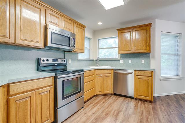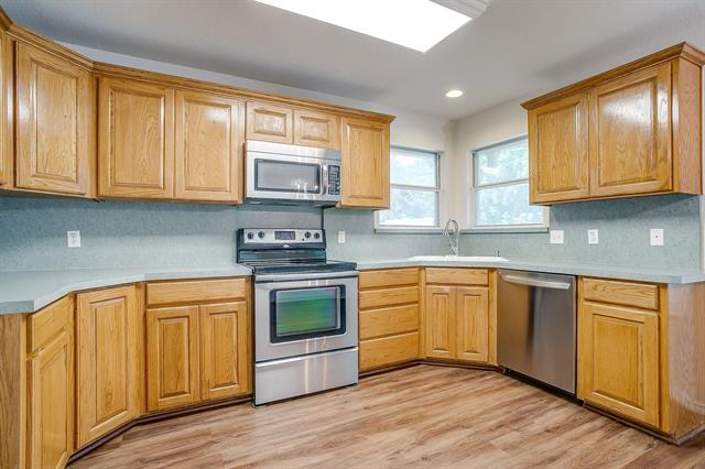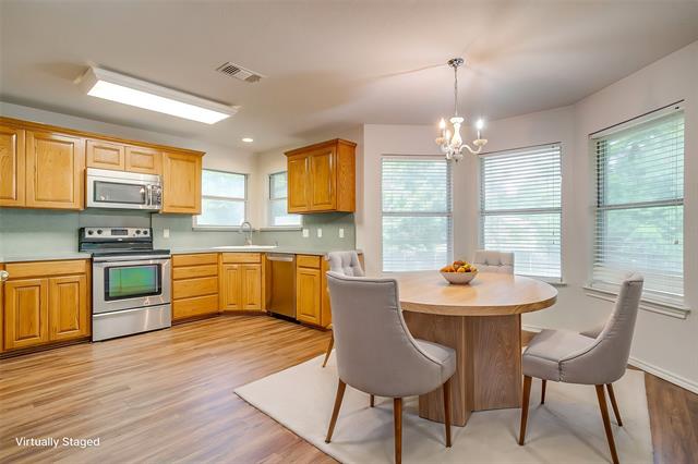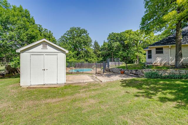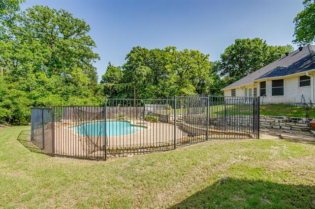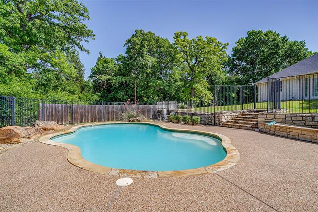 Cute doll house on a cul-de-sac by a walking trail. Oversized lot with an inground gunite swimming pool. Treed lot and plenty of room for your growing family. Recent updates include freshly painted interior and new carpeting in the bedrooms. Walk into a large family room with decorative fireplace and built-ins. Wood flooring in family room and kitchen. Kitchen has custom cabinets, stainless appliances and double sink with corner windows overlooking back yard. Primary suite has tray ceiling and ensuite with dual sinks, garden tub and separate shower. Second and third bedrooms are good size for your family. Small enclosed patio. Large backyard with a pool with iron perimeter fencing, a storage building and landscaped with many trees. A MUST SEE!!