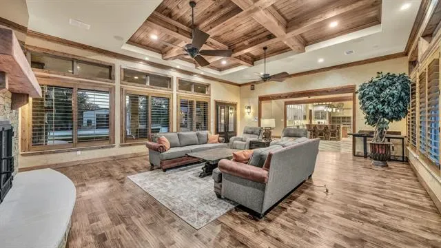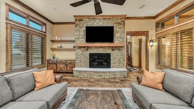 Welcome to 117 Hansma Way, a breathtaking custom ranch estate in the gated Bar H Ranche community of Weatherford. Set on 2 ACRES of picturesque Parker County land with mature trees and full PIPE fencing, this property captures the heart of horse country living with true Big Texas energy. Every aspect was crafted with care and precision. Meticulously maintained and still presenting like new, this retreat is designed for comfort, beauty, and peace of mind. The residence offers nearly 4,809 square feet with 4 bedrooms, 4 full baths, and 1 half baths, plus a full bath in the 30×40 workshop. Interiors showcase hand-scraped hickory wood floors, travertine tile, masonry fireplaces, and onyx lighting. HEATED bathroom floors add luxury, while wide hallways, handicap rails, and wheelchair-friendly design provide accessibility. A private MOTHER-IN-LAW SUITE with private living room offers space for guests or multi-generational living. The gourmet ENTERTAINING kitchen is both elegant and practical, featuring an oversized island, double ovens, warming oven, gas stove, two dishwashers, two sinks, wine cooler, and walk-in pantry. Built with integrity, the home includes 2×6 insulated walls, insulated ceilings and interior walls, Class 4 hail-resistant shingles, a 40–45 kW Generac GENERATOR, 1,000-gallon buried propane tank, three zoned HVAC units, and a tornado-rated safe room with 14-gauge steel walls. Even the garages, attic, and workshop were insulated and finished with care. Two oversized 2-car garages with epoxy floors, EV charger, custom storage, and a porte-cochere are paired with a 30×40 insulated WORKSHOP with full bath. Outdoor living shines with a covered kitchen including grill, pellet smoker, refrigerator, sink, and burner, plus an expansive patio with fireplace. Every inch of this estate reflects craftsmanship, foresight, and pride of ownership, offering a rare opportunity in one of Weatherford’s top small-acreage luxury communities. More details at 117hansmaway.info