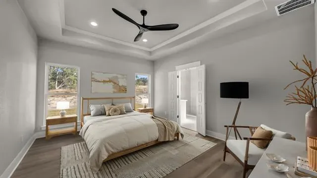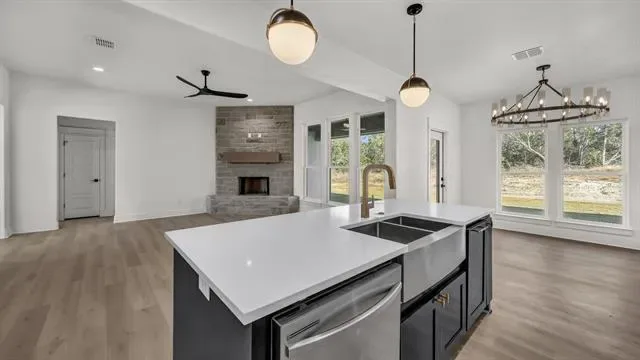 Step inside this stunning brand-new home nestled on 2 acres in the peaceful Barnett Ridge community. Built in 2024, this modern single-story combines clean design with everyday comfort, offering 4 bedrooms, 2 baths, and an open floor plan made for effortless living. The kitchen stands out with a large island, stainless appliances, and generous cabinetry, flowing seamlessly into a warm living area anchored by a cozy fireplace. The primary suite features a soaking tub, separate shower, and spacious walk-in closet. Enjoy sweeping country views, a side-entry garage, and the freedom of no HOA—all within Peaster ISD.