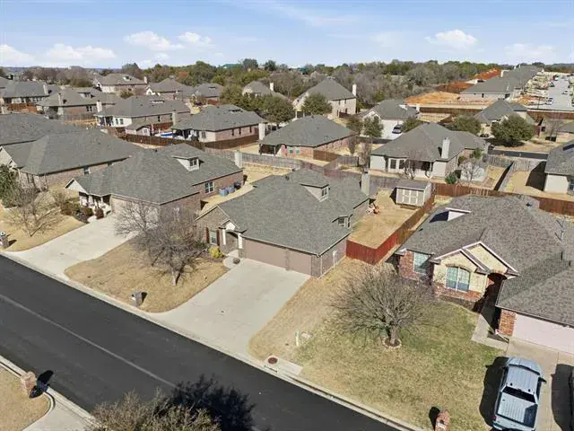Very well maintained and thoughtfully designed, this 4-bedroom, 3 bath home with a 3-car garage offers space, flexibility, and convenience. The split-bedroom layout provides privacy, with two bedrooms featuring ensuite baths. A spacious upstairs flex area is ideal for a media room, home office, or game space. The large kitchen is perfect for entertaining, offering ample room for gatherings and everyday living. Step outside to a backyard featuring a 10×12 shed, ideal for storing lawn equipment, outdoor gear, or creating additional space for entertaining needs. Conveniently located with easy access to FM 730, this home is just 1.5 miles from Hwy 180 and 2 miles from I-20, making commuting simple. Shopping and dining are less than 10 minutes away. A functional layout paired with a prime location makes this home a standout.