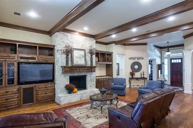 Gas Logs, Living Room, Masonry, Propane, Raised Hearth, Stone, Wood Burning