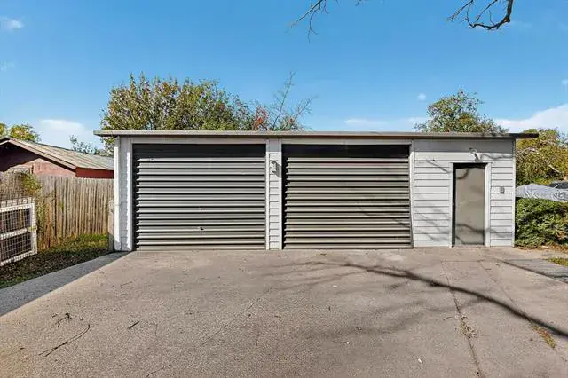 Outside, a detached two-car garage with roll-up doors and openers offers flexible space for parking, storage, or projects, all protected by a durable metal roof. The backyard is well maintained, landscaped, and private ready for quiet mornings or relaxed evenings.
