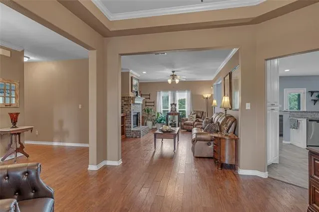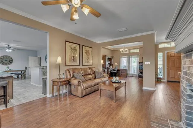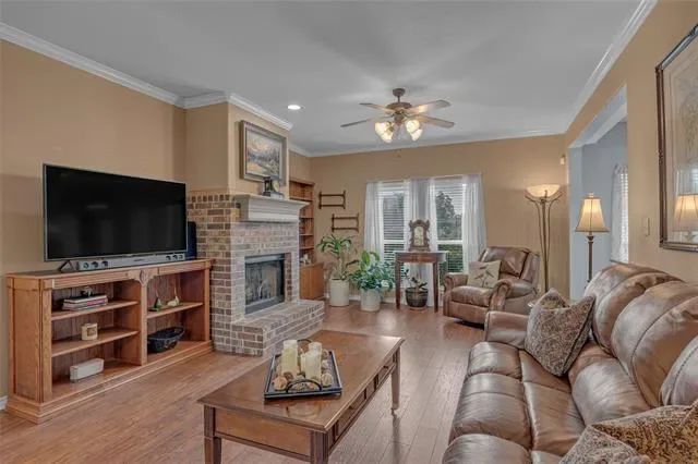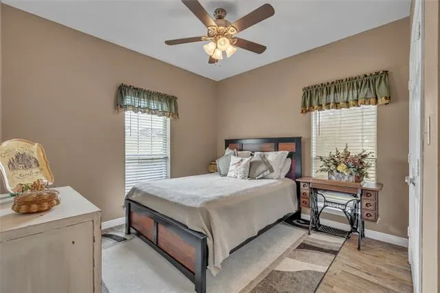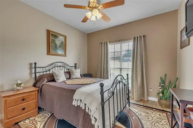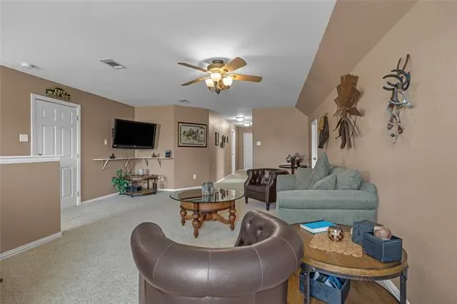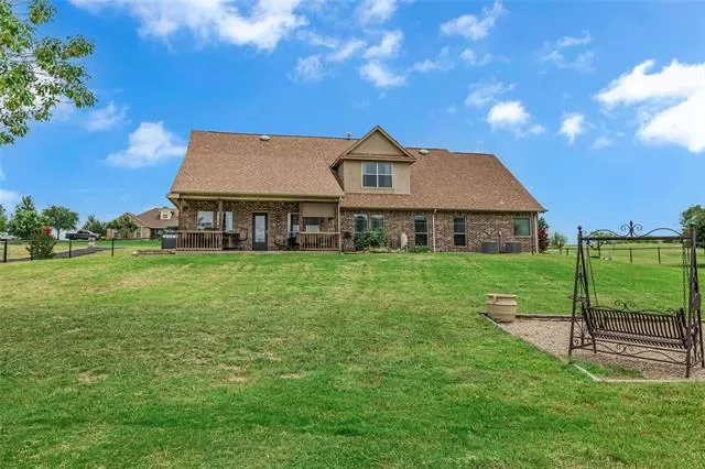 PRICED TO SELL! Charming, Spacious and Functional on 1.655 AC. 4 bed,3 baths, 2 dining and 2 living areas spread across 2 levels for comfort and convenience. You are welcomed into a cozy yet spacious living area with a FP, perfect for hosting gatherings with friends and family. The open floor plan seamlessly flows into the kitchen with granite countertops, nice size pantry offering space for culinary creations. The split bedrooms ensures privacy and tranquility, with primary suite secluded and a sanctuary for relaxation. Venture upstairs to discover a 2nd living area, bedroom and bath, offering versatility. Additional space can serve as a private oasis for guest or family members. The large back yard has a pipe fence with no climb wire, 4 exterior water hydrants, 220 plug in garage, fruit trees, 2 outdoor sheds for storage and or equestrian use. 1 horse allowed. HOA offers a community pool. New water heater in 2022, storm shelter and exterior cameras.