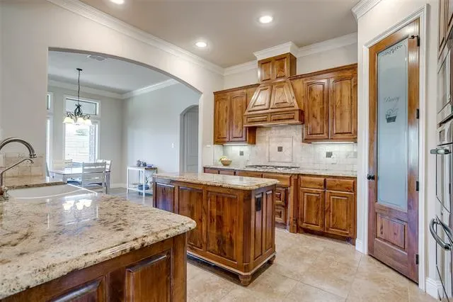 Welcome to your dream home in the prestigious, gated golf course community of Canyon West—just west of Weatherford and nestled in the rolling hills of Parker County. This beautifully designed stone and brick residence sits proudly on 1±acres across from a serene community pond, offering panoramic views and peaceful living in highly acclaimed Brock ISD. Step inside and be greeted by soaring vaulted ceilings, rich hand-scraped hardwood floors, crown molding, and an abundance of natural light. The open-concept living space centers around a striking stone fireplace and flows effortlessly into the chef’s kitchen—complete with a center island, 5-burner gas cooktop, double ovens, custom wood cabinetry, and a farmhouse sink. The oversized walk-in pantry provides ample storage for kitchen appliances and pantry essentials, while the adjacent formal dining room is ideal for hosting family and friends. This home offers 4 spacious bedrooms plus a flex room with a closet that could serve as a 5th bedroom, office, playroom or media room. The private primary suite is a true retreat, featuring a luxurious en-suite with jetted tub, walk-in shower, dual vanities, and a massive walk-in closet. The oversized utility room has built-in cabinetry, hanging area, sink, and full-size washer and dryer space. Step outside to your extended covered patio— with perfect space for an outdoor kitchen and complete with a dining area, TV, and sunset views. The expansive, iron-fenced backyard is a blank canvas for a pool, garden, or play area—whatever your lifestyle dreams may include. Residents of Canyon West enjoy access to an award-winning Par 72 golf course, a 7,200 sq. ft. limestone clubhouse with pool and sports court, and million-dollar views throughout the community. Enjoy peace of mind with a NEW water well pump (2023) and solar screens (removed for showings). This home blends timeless luxury with everyday comfort and is ready to welcome you home.