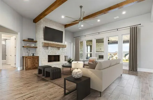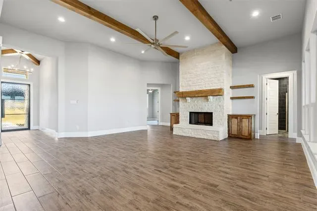 Stunning New Construction in Canyon West – Don’t miss this incredible opportunity to own a brand-new, move-in-ready home in the highly desirable and established Canyon West Golf Course community. Thoughtfully designed with high-end finishes and an open, flowing floorplan, this home offers the perfect blend of luxury, comfort, and function. Step inside to soaring ceilings, abundant natural light, and a spacious living area featuring a striking stone fireplace and walls of windows. The chef’s kitchen is a true showstopper, complete with quartz countertops, custom cabinetry, a massive island, double oven, and premium finishes—ideal for both everyday living and entertaining. The luxurious primary suite is a serene retreat, boasting a spa-inspired bath with a huge walk-in shower and an oversized closet. With 4 full bathrooms, generously sized secondary bedrooms, and a dedicated study with exposed cross beams, there’s space for everyone. A corner game room opens via French doors to the expansive covered patio, complete with an outdoor fireplace—perfect for year-round enjoyment. Additional highlights include spray foam insulation for energy efficiency, a private water well (no water bill), and a prime location within award-winning Brock ISD with quick access to I-20. This home truly checks every box!