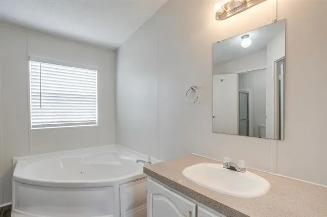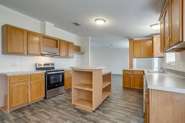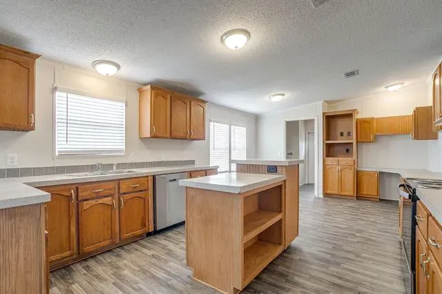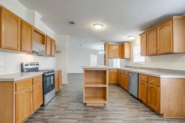 One of Palm Harbor Home’s most popular floor plans back in its day! Ready for immediate move in. Inside there’s an island kitchen with built in desk-workspace, appliances include an electric range and dish washer. Master suite features an ensuite bath with garden tub and separate shower, plus a big walk-in closet. Large lot with a few trees and access to a pond. Big decks at the entrances. Home is in its original install location, so FHA, Conventional financing are available as well as VA and zero-down USDA. Great location between Weatherford and Springtown!
