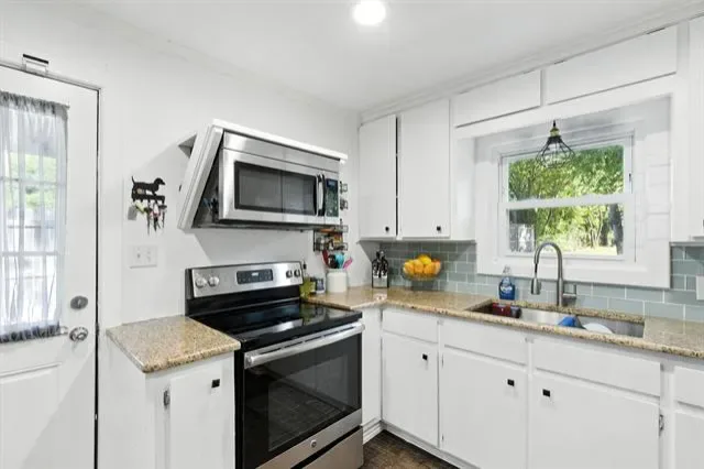 Inside, you’ll find an open-concept layout that creates an easy flow from the living area into a bright, welcoming kitchen featuring granite countertops, contemporary appliances, and ample cabinetry. Additional interior upgrades include updated plumbing, energy efficient windows, a whole-home security system, and a 2022 HVAC system.