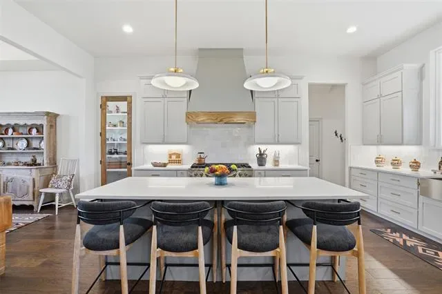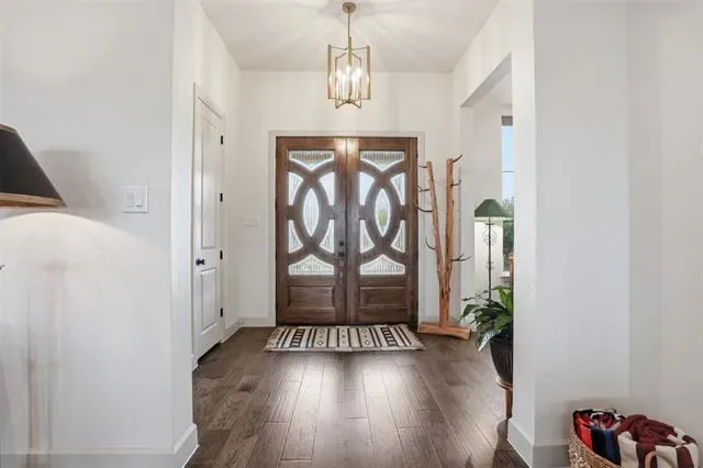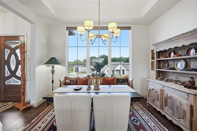 Set on just over 2 peaceful acres between Weatherford and Granbury, this beautifully designed 2023 modern farmhouse offers space, style, and flexibility for country living. The open concept layout seamlessly connects the living, dining, and kitchen areas, perfect for both everyday living and entertaining, while a dedicated office provides a quiet work-from-home option. A cozy fireplace anchors the living room, and the spacious primary suite features a soaking tub, separate shower, and generous walk-in closet. Upstairs, the fifth bedroom with a full bath could also serve as a game room or media room. Outside, enjoy wide open skies, visiting deer, and room to add a pool. A standout feature is the impressive 40×40 insulated and air-conditioned workshop with a premium modern garage door, bathroom, RV hookups, and patio, an ideal space for hobbies, projects, or equipment. With no HOA, horse-friendly acreage, and the Brazos River boat ramp just minutes away, this property offers the perfect blend of privacy, functionality, and country charm.