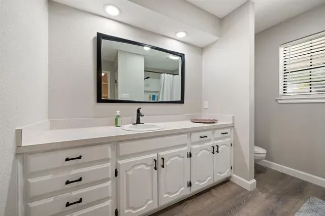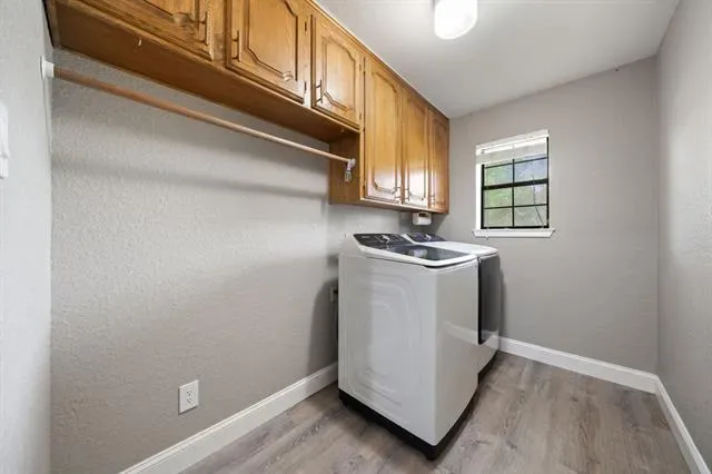 Tucked within the established Clear Lake Country neighborhood in Weatherford, Texas, this inviting home offers space, charm, and everyday convenience in one of the area’s most desirable communities. With mature trees and NO HOA, the neighborhood provides a peaceful setting just moments from I-20, retail, and dining options. The backyard is a true highlight, featuring a beautifully maintained pool with IntelliBrite color-changing lighting—perfect for entertaining guests or relaxing under the Texas sky. Inside, the home showcases a functional layout designed for comfort and versatility. Offering 3 bedrooms and 2.5 bathrooms, the interior is enhanced by decorative lighting, and a natural flow between spaces. A formal dining room creates the perfect setting for gatherings, while a dedicated office with built-ins adds convenience for remote work or study. The primary suite is thoughtfully designed with plenty of room to unwind, complete with dual closets for added storage. The kitchen has been updated with freshly painted cabinetry and quartz countertops. Luxury vinyl plank (LVP) flooring offers a stylish yet durable finish throughout, complementing the home’s well-maintained condition and true move-in ready appeal. Outside, you’ll find an extended driveway, oversized two-car garage, additional carport, and a detached shop—perfect for extra storage, hobbies, or a dedicated workspace. If you’re searching for a well-maintained home in Weatherford, TX with a pool, versatile space, and no HOA in a desirable neighborhood, this property is a must-see.