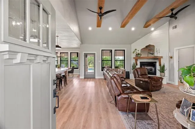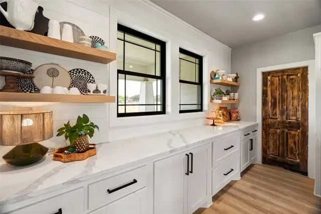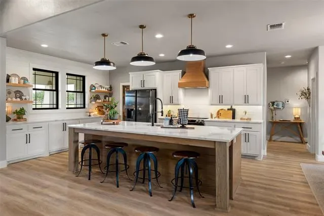 GORGEOUS CUSTOM HOME IN BROCK ISD WITH NO CITY TAXES & NO HOA on almost 4 acres with a pool and a pond! This is the perfect home for those that want some extra space, and outdoor amenities for the kids to enjoy! Beautiful open floor plan with a large family room with a fireplace, and a huge kitchen with tons of cabinets (with pullouts) and countertop space! Eye catching quartz countertops with stainless appliances! Wonderful split bedroom arrangement with a sizeable master overlooking the large salt water pool! Pristine master bath with walk in shower from both sides! The home features its own private pond, 2 dishwashers, an extra washer-dryer for the jack & jill baths, drying racks in the utility room, fiber internet, a second front entrance and mud room, and a large storge closet for Christmas decor or other items. There is a storage garage, and the 3 car carport could easily be enclosed. Good blown in and radiant barrier insulation. ABSOLUTELY GORGEOUS!